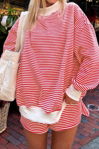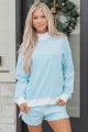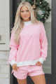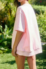 Light Pink Solid Color Exposed Seam Mock Neck Oversize Tee Casual Shorts 2pcs Outfit