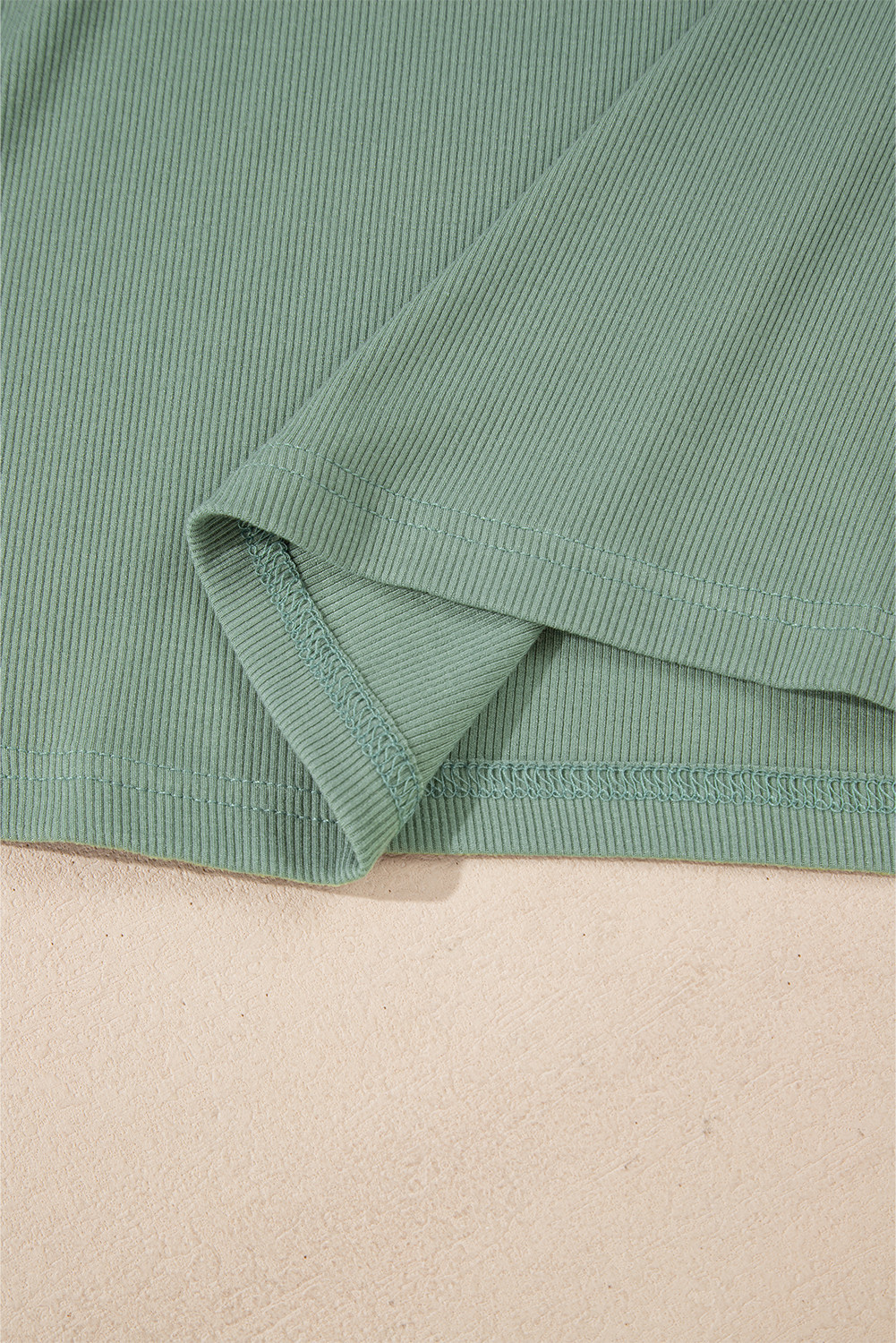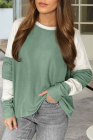 Mint Green Ribbed Colorblock Patchwork Raglan Long Sleeve Top