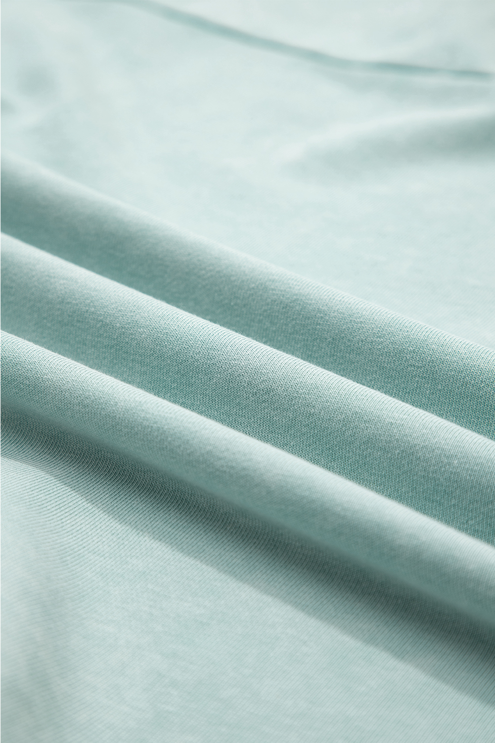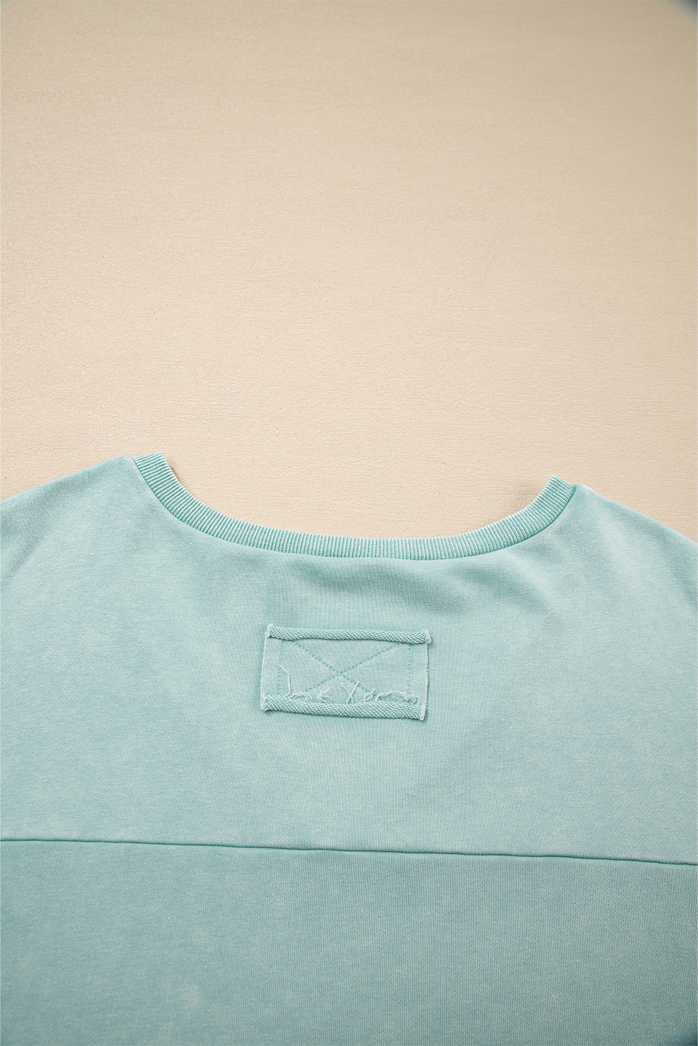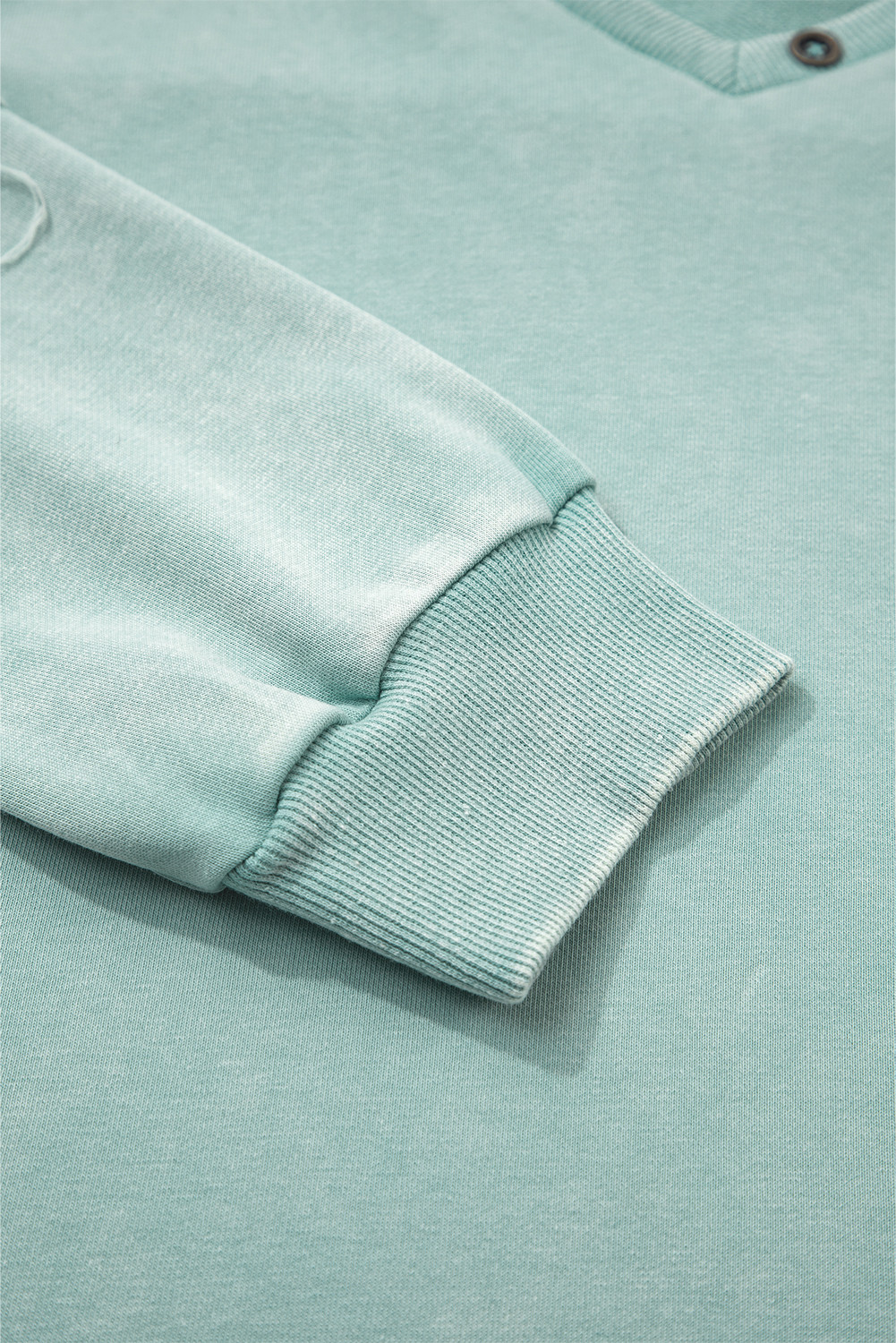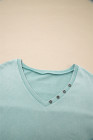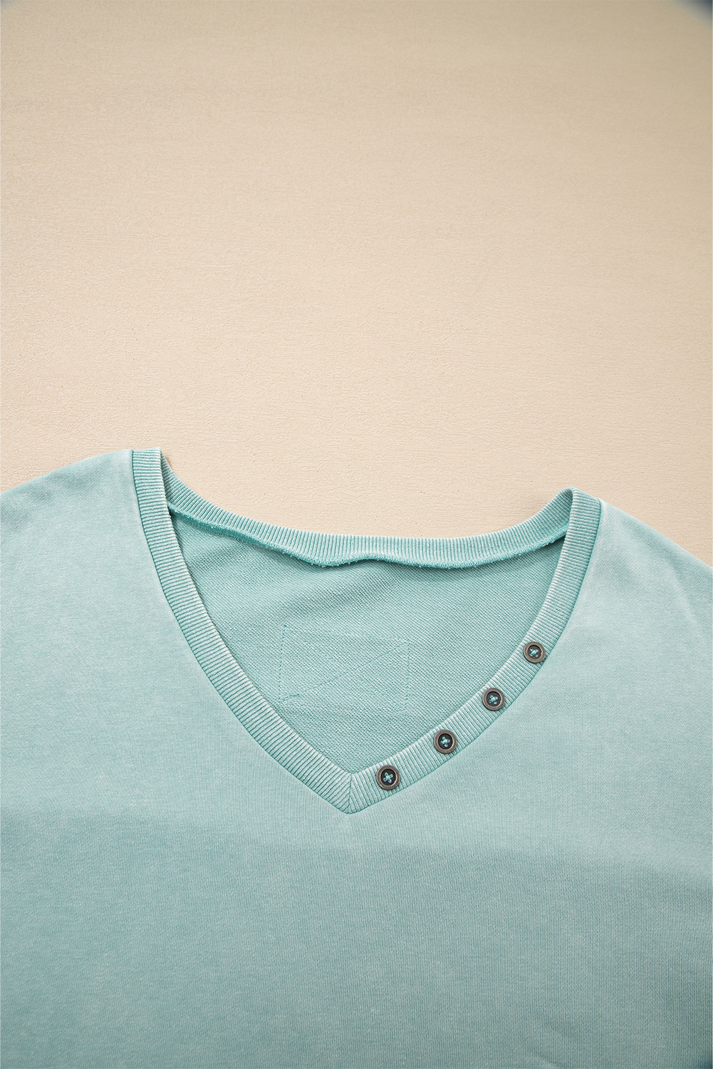 Mist Blue Mineral Wash Exposed Seam Buttoned V Neck Pullover Top