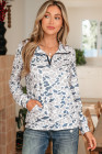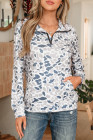 Multicolour Camouflage Print Kangaroo Pocket Zip Collar Pullover Sweatshirt