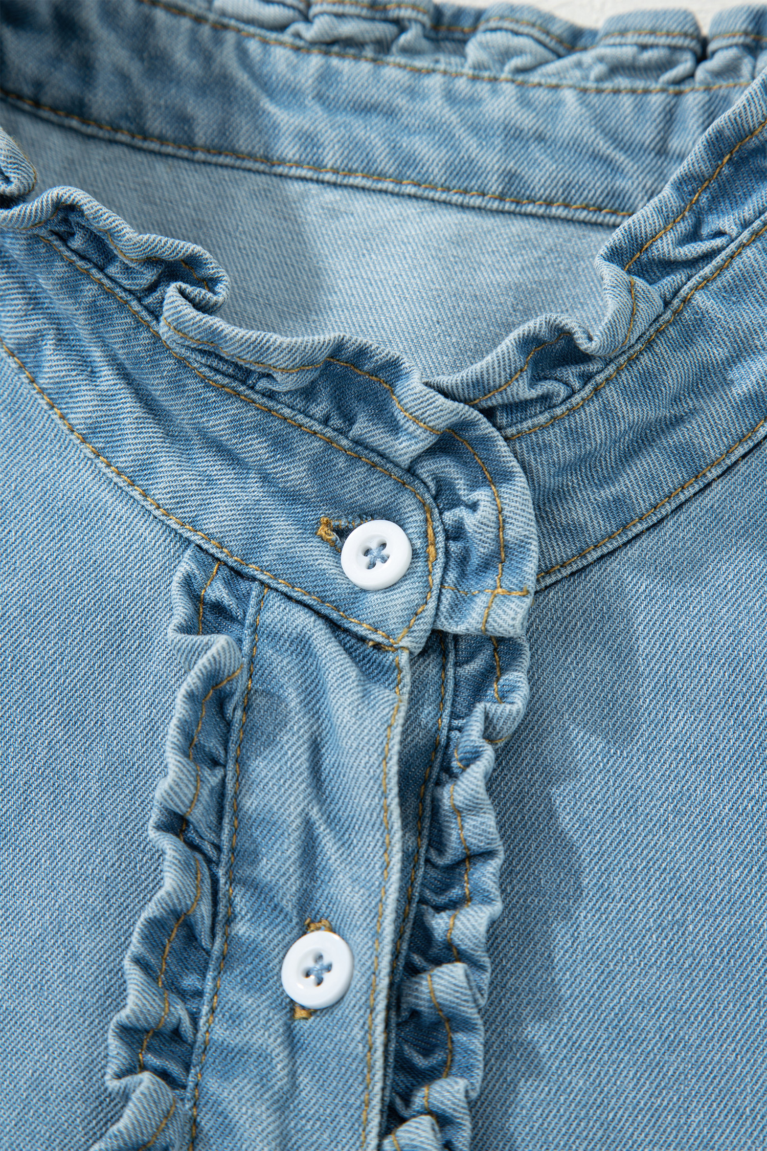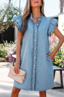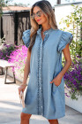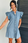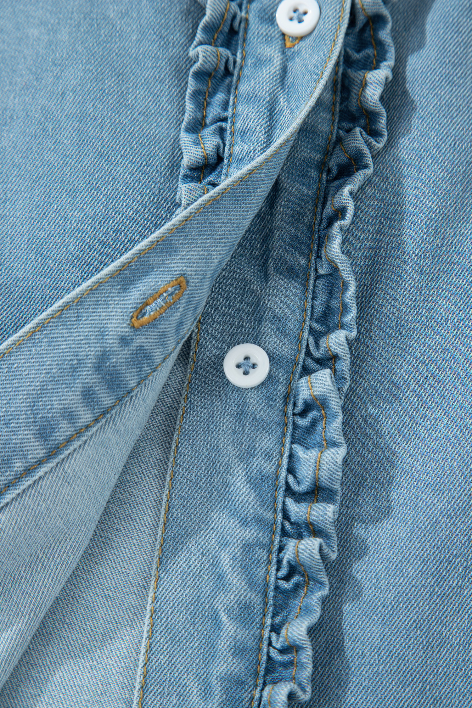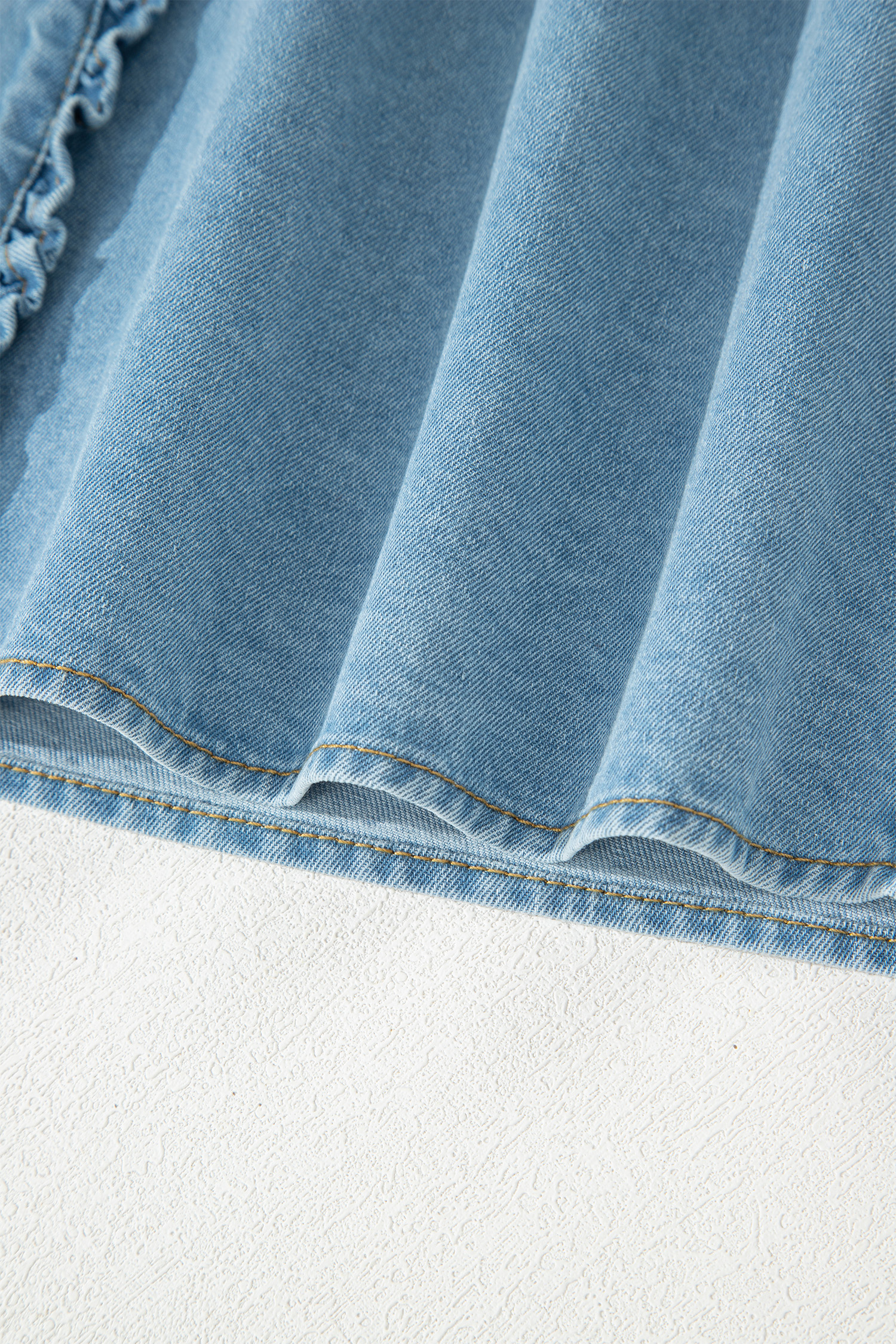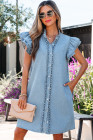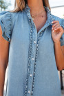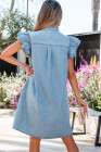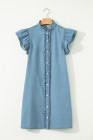 Myosotis Frilled Detail Button Down Ruffle Short Sleeve Denim Mini Dress