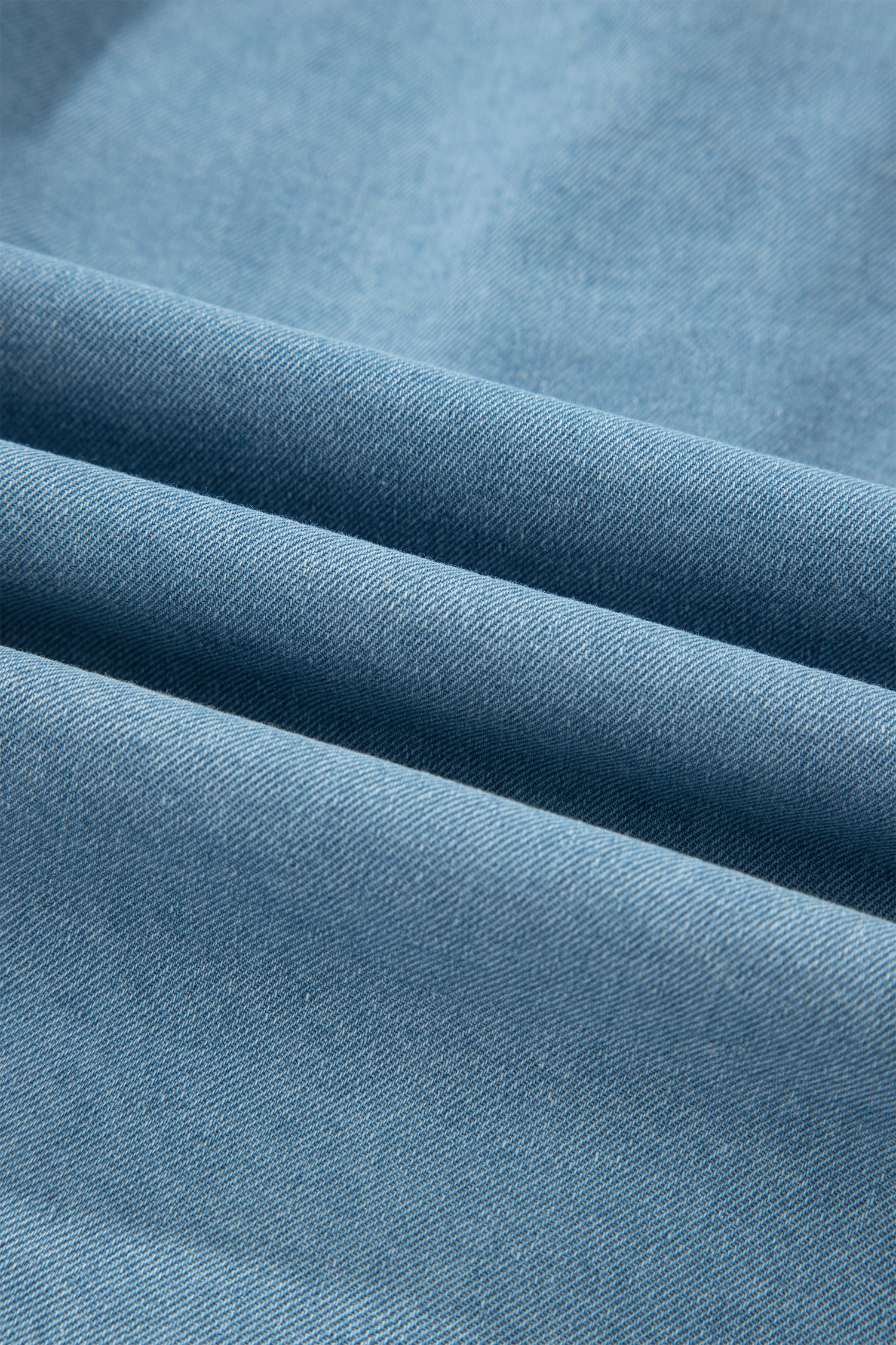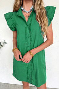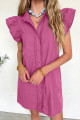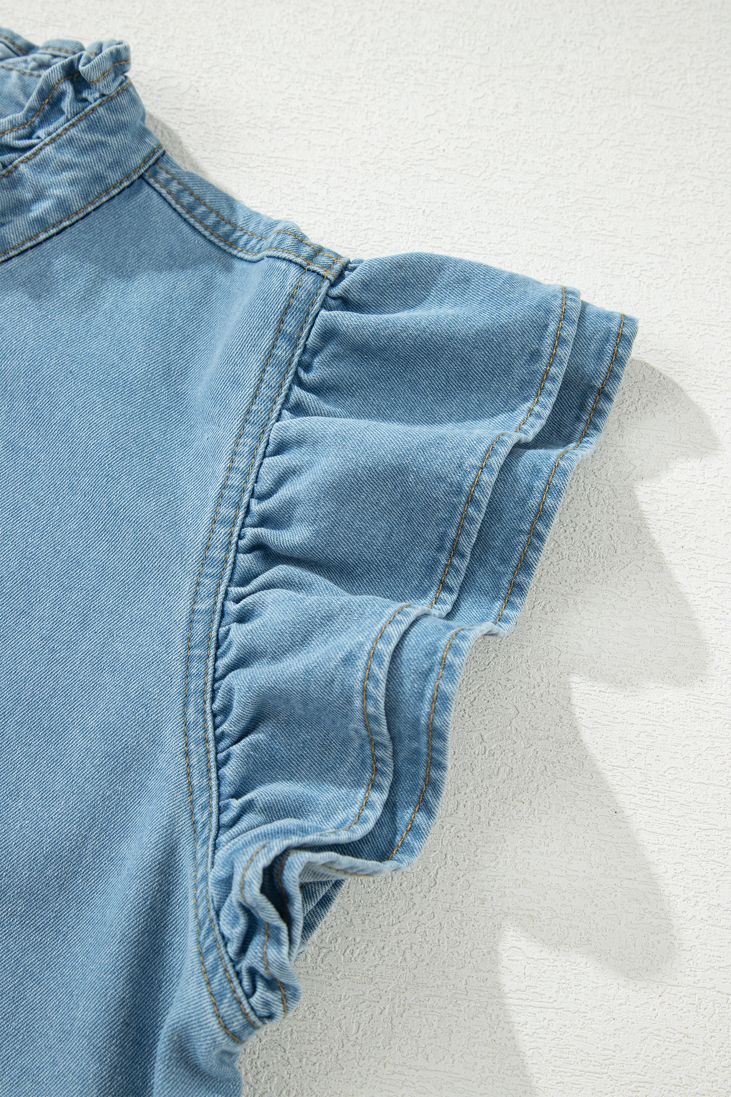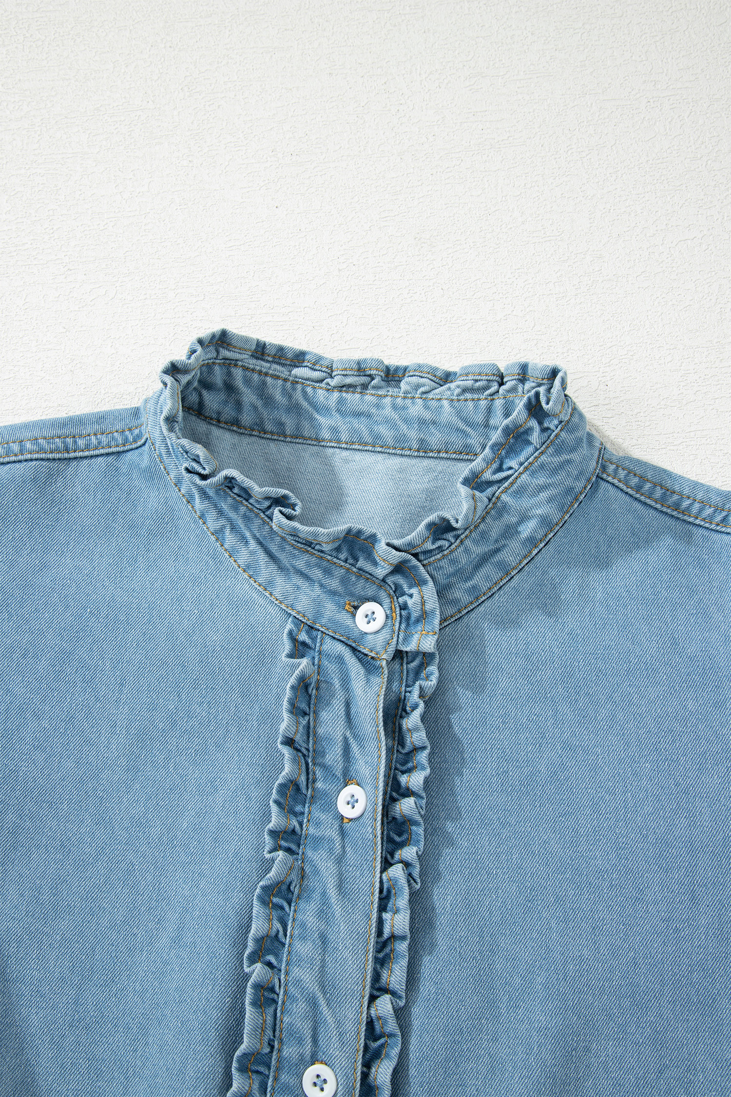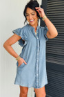 Myosotis Frilled Detail Button Down Ruffle Short Sleeve Denim Mini Dress