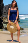 Navy Blue Spaghetti Straps Contrasted Ricrac Trim Flared Tankini 2pcs Swimsuit