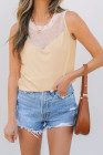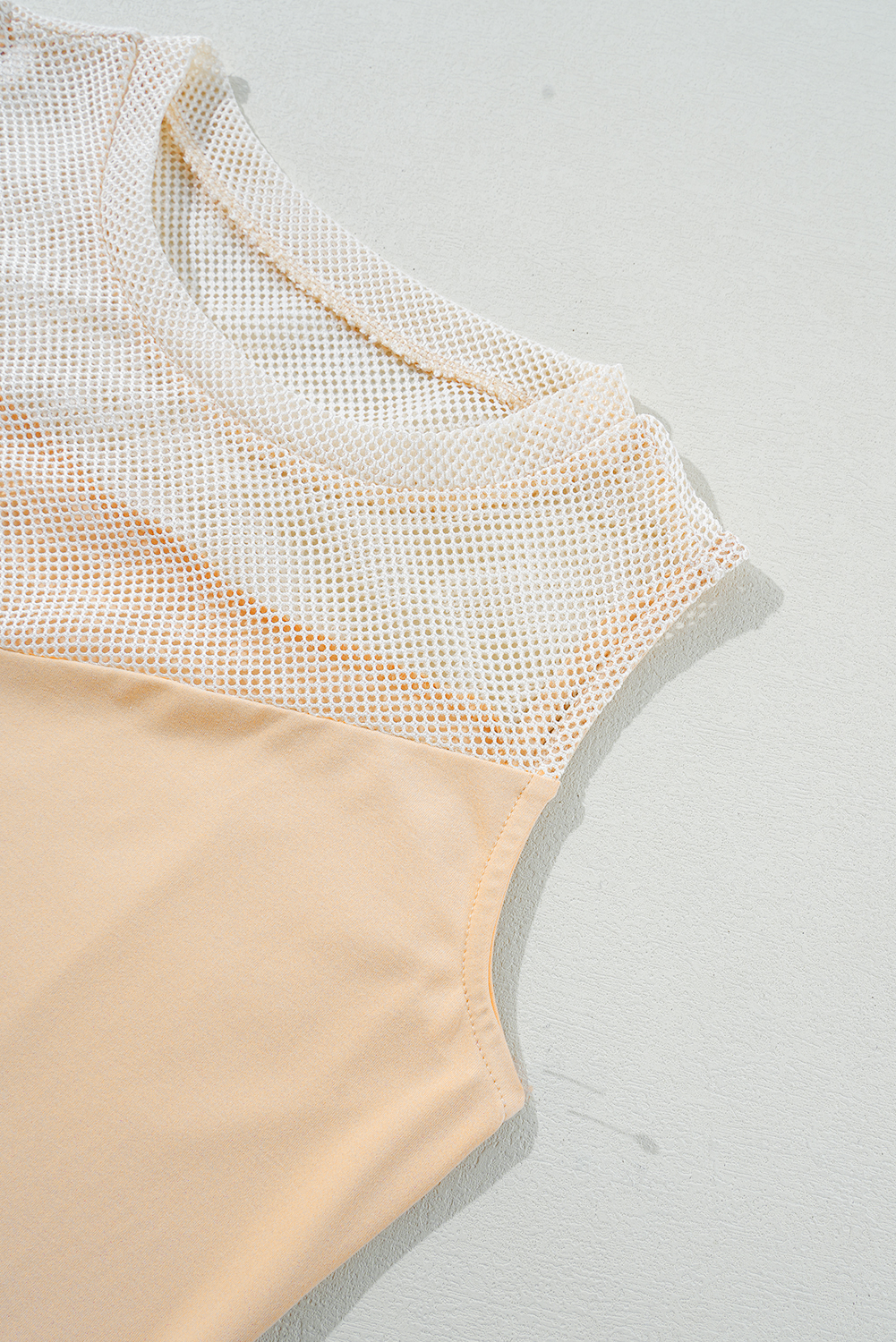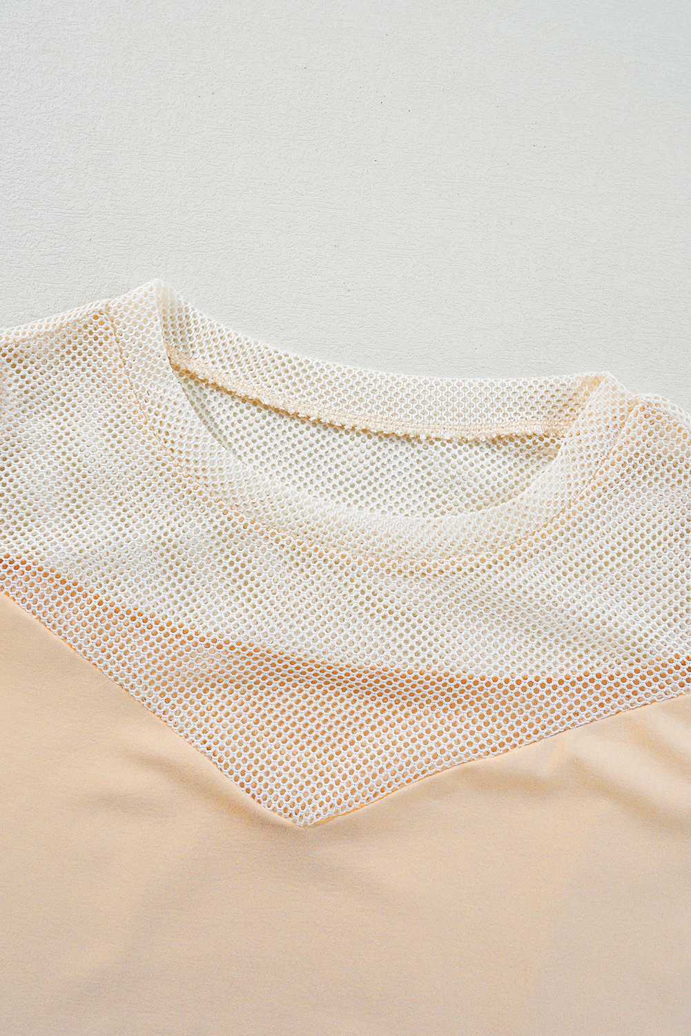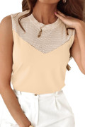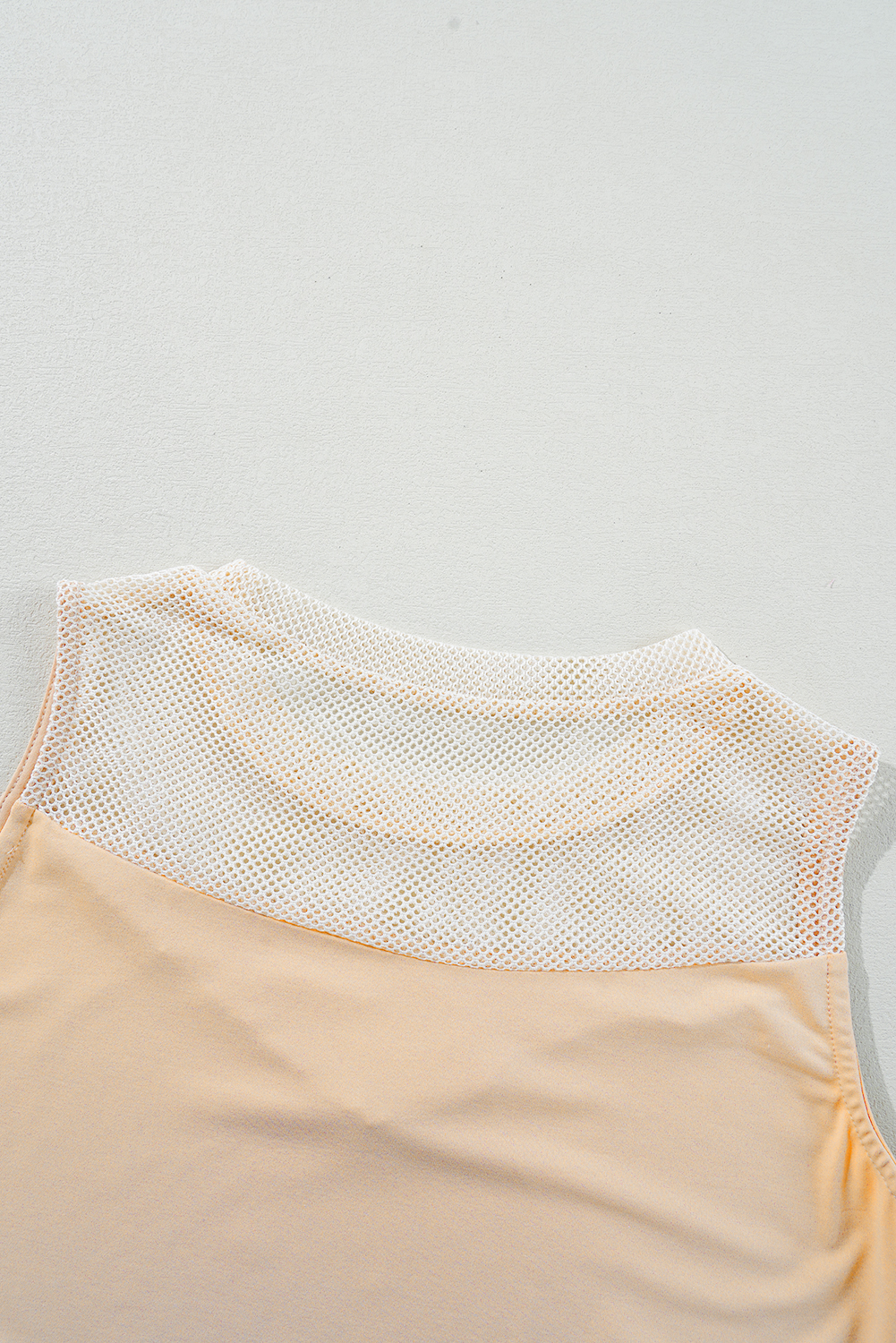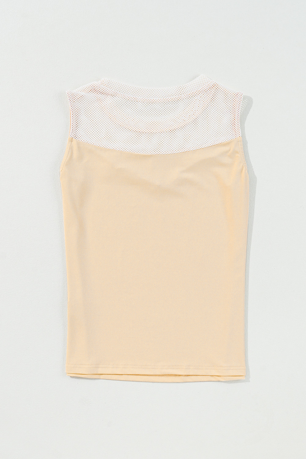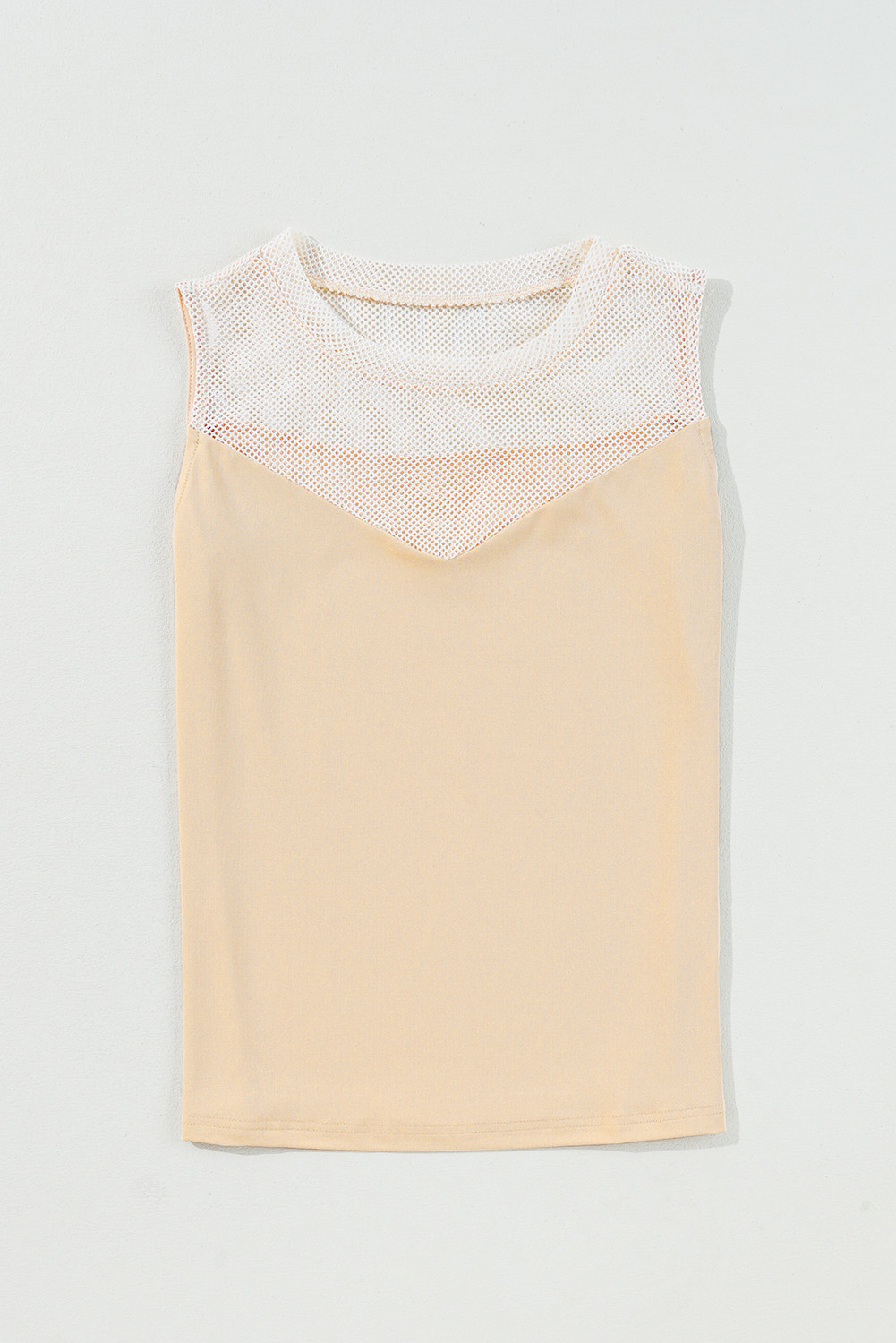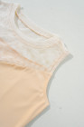 Oatmeal Solid Mesh Patchwork Crew Neck Tank Top