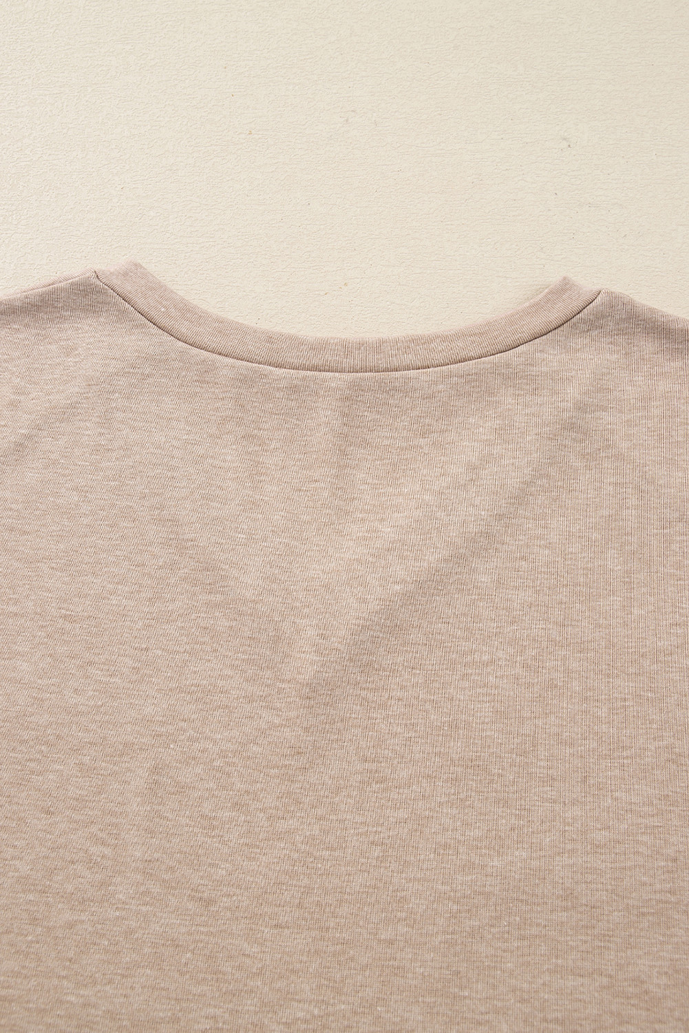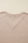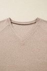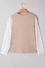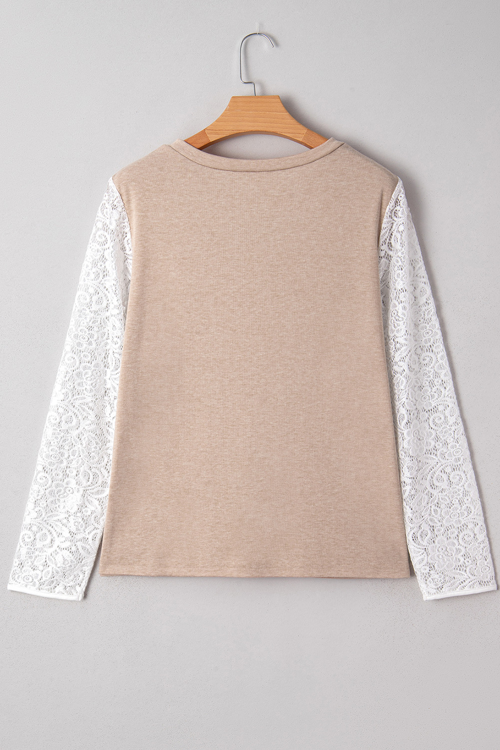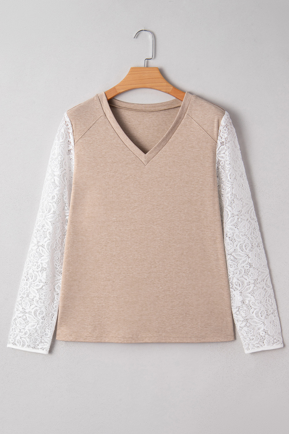Oatmeal V Neck Contrast Lace Patchwork Long Sleeve Top