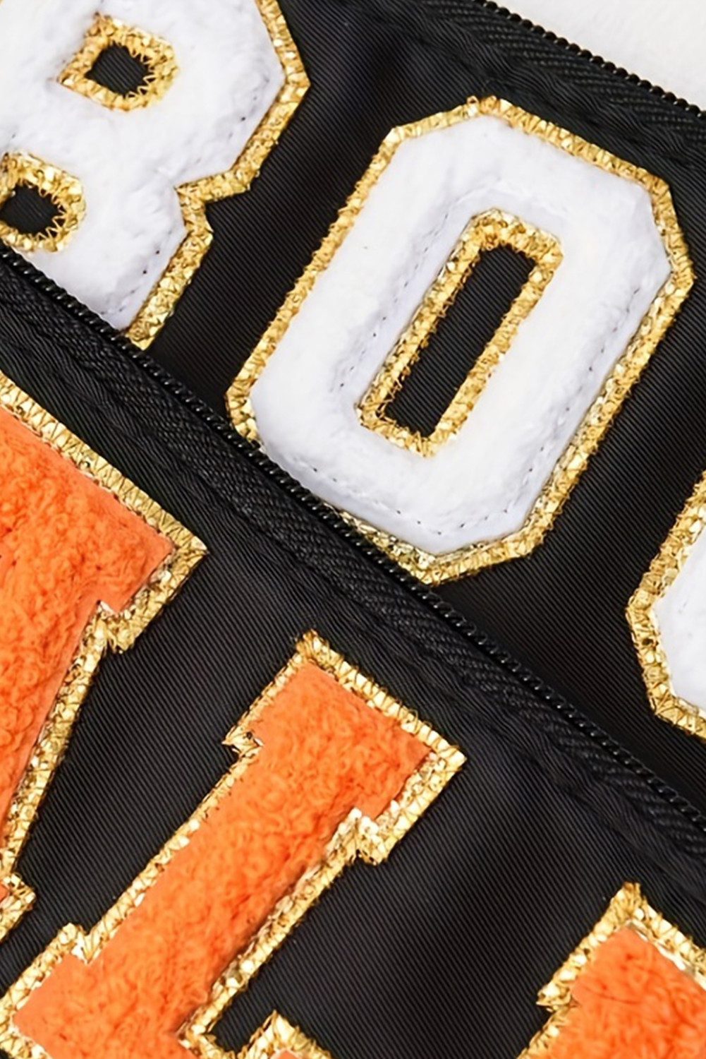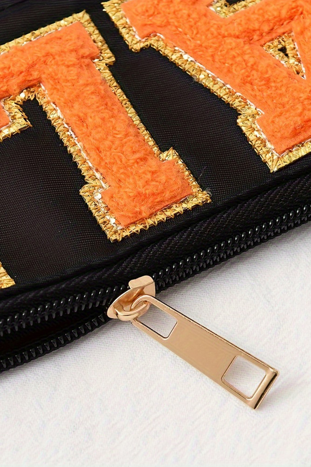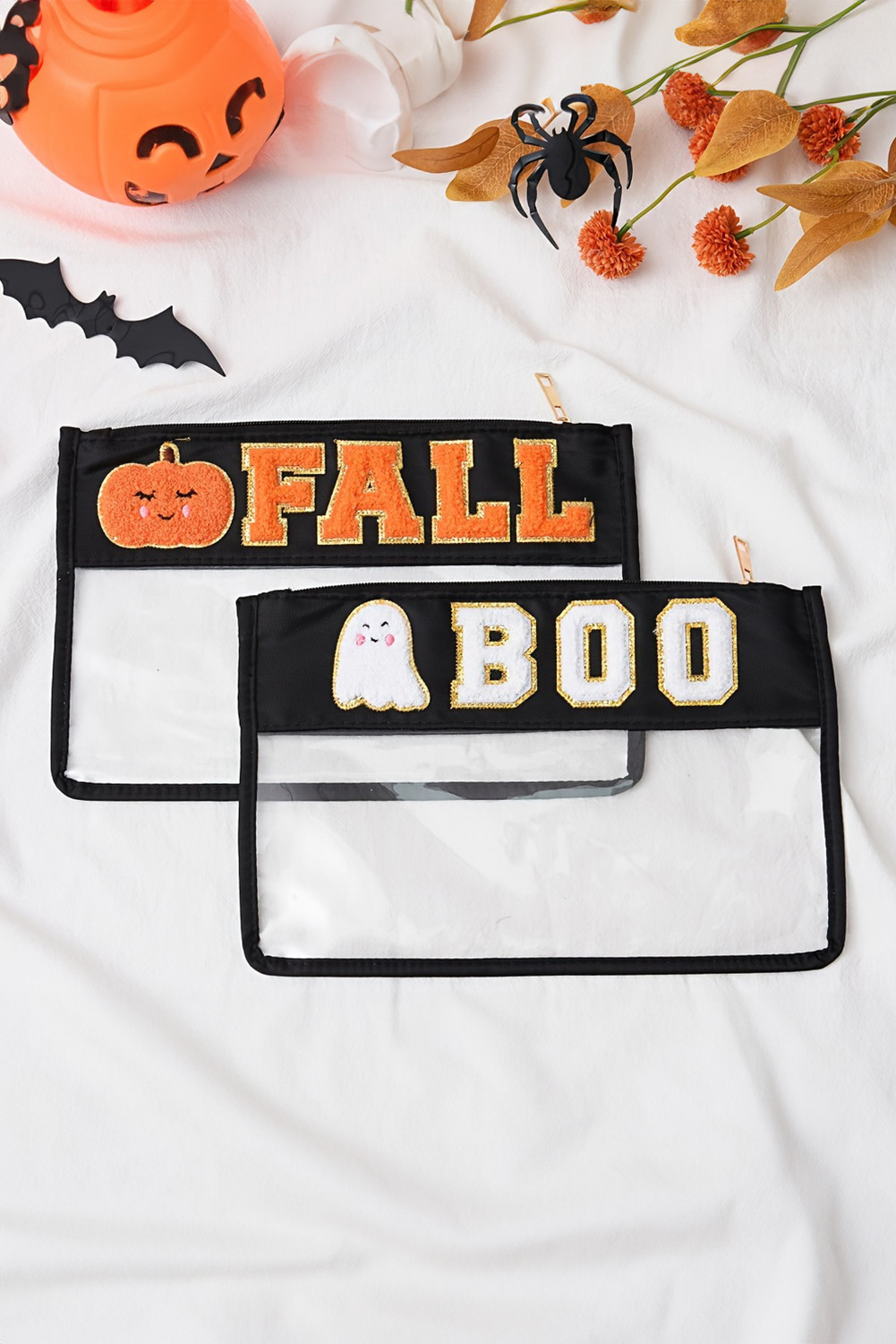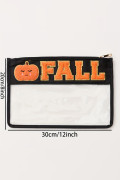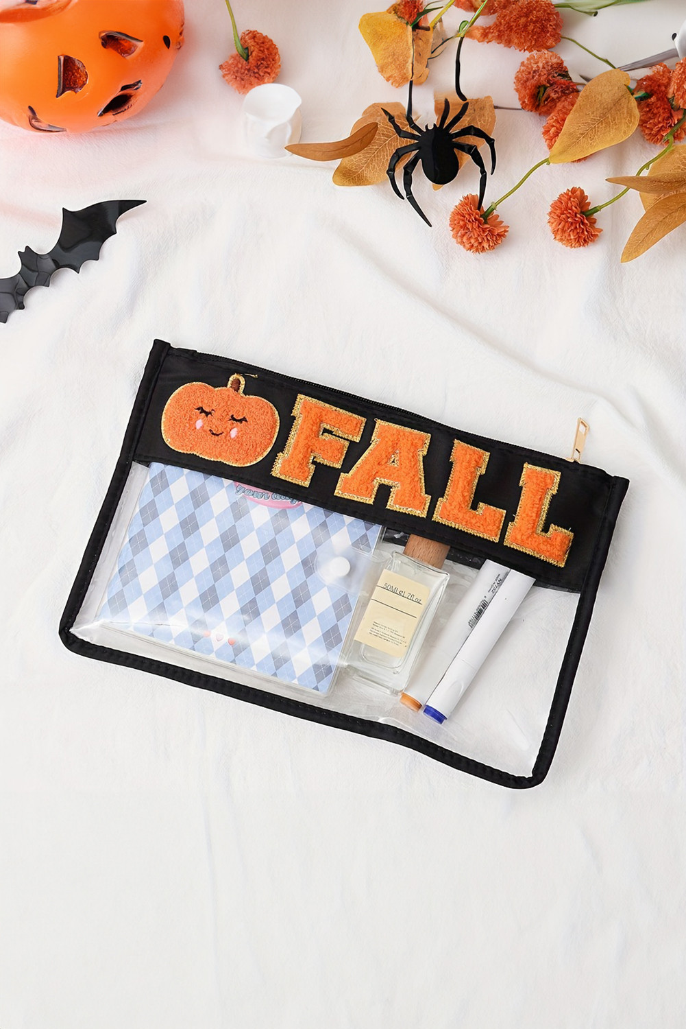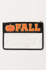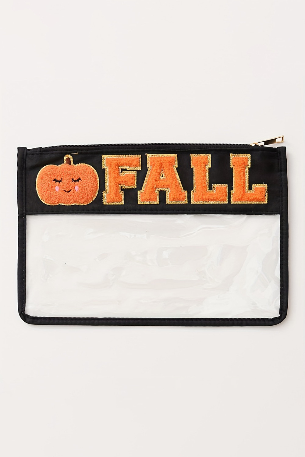 Orange FALL Pumpkin Chenille Detail Clear Zip Pouch