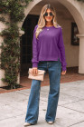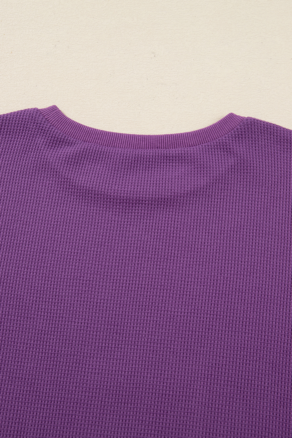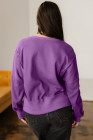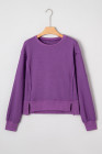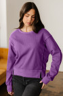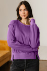 Orchid Mist Solid Color Raw Seam Patchwork Ribbed Drop Shoulder Sweatshirt