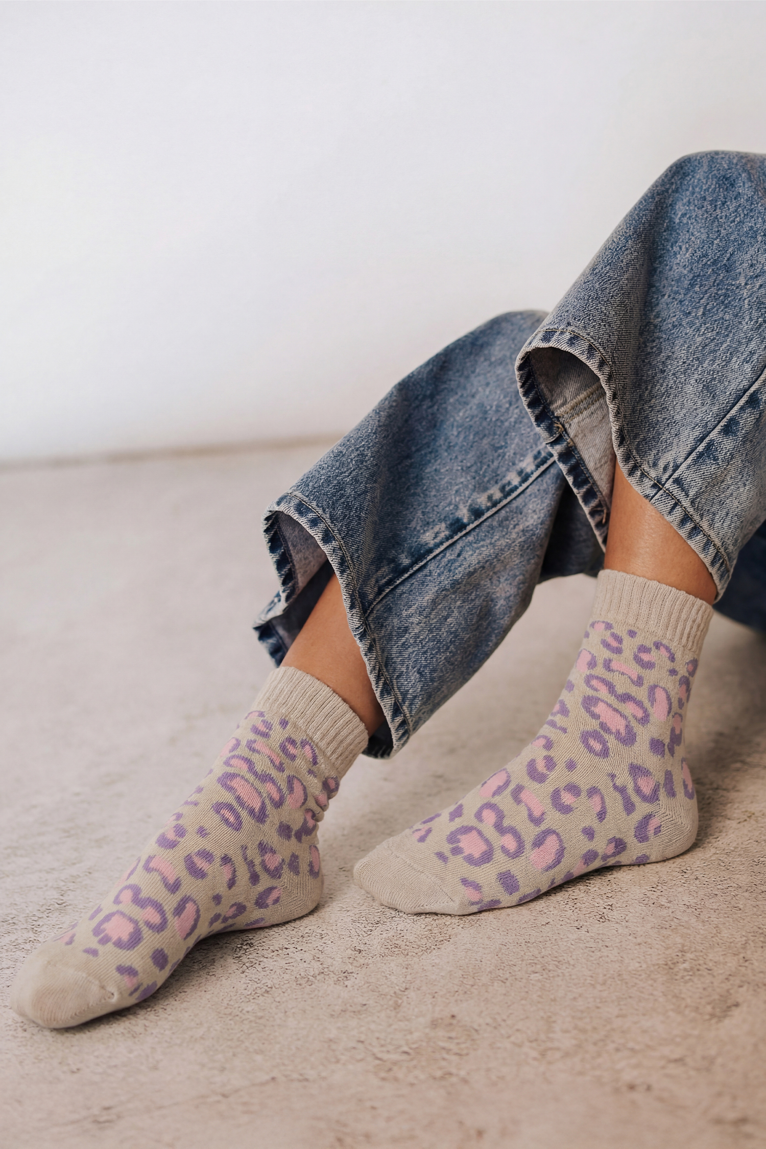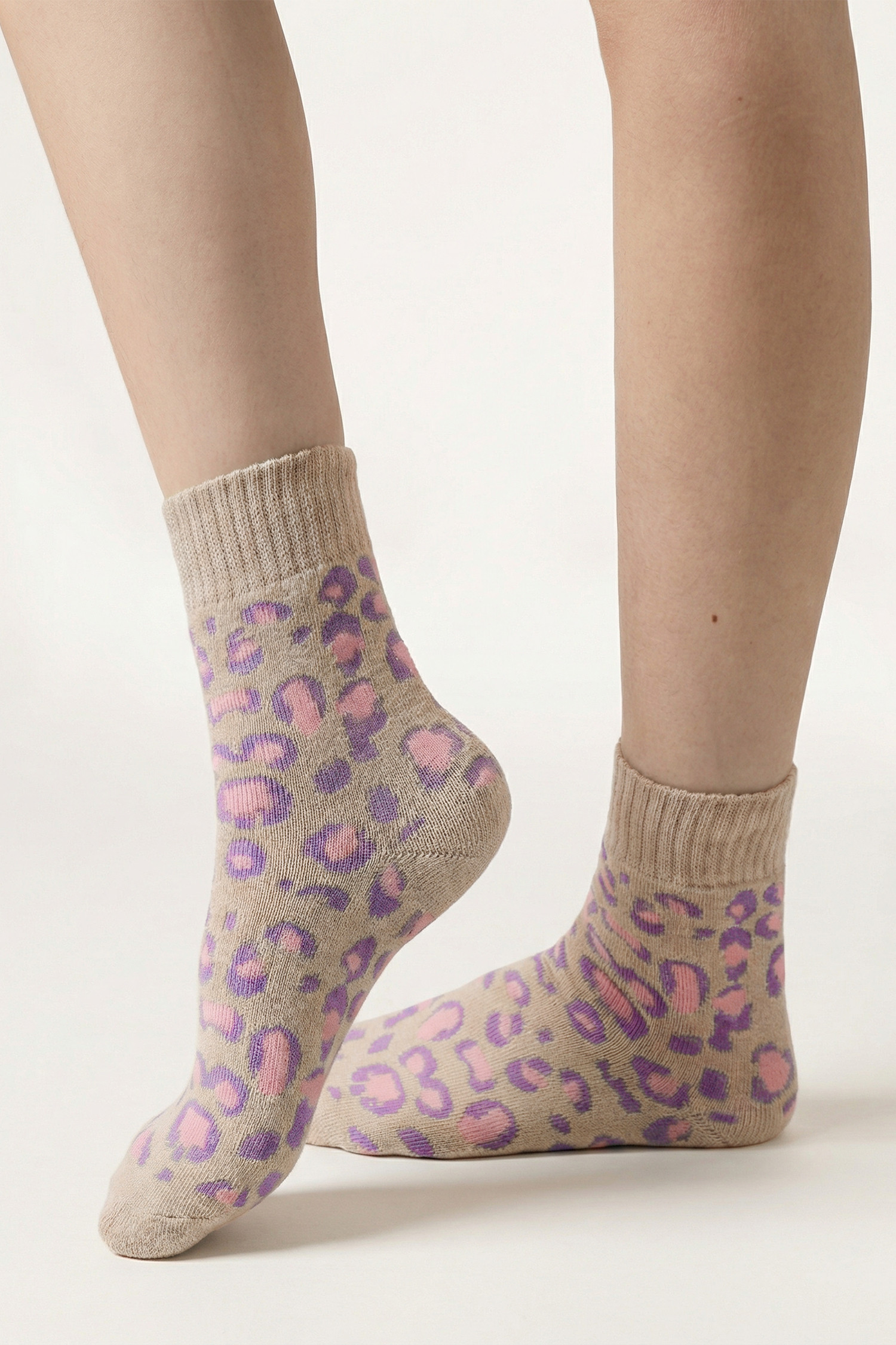Orchid Petal Leopard Print Ribbed Uphold Comfy Socks