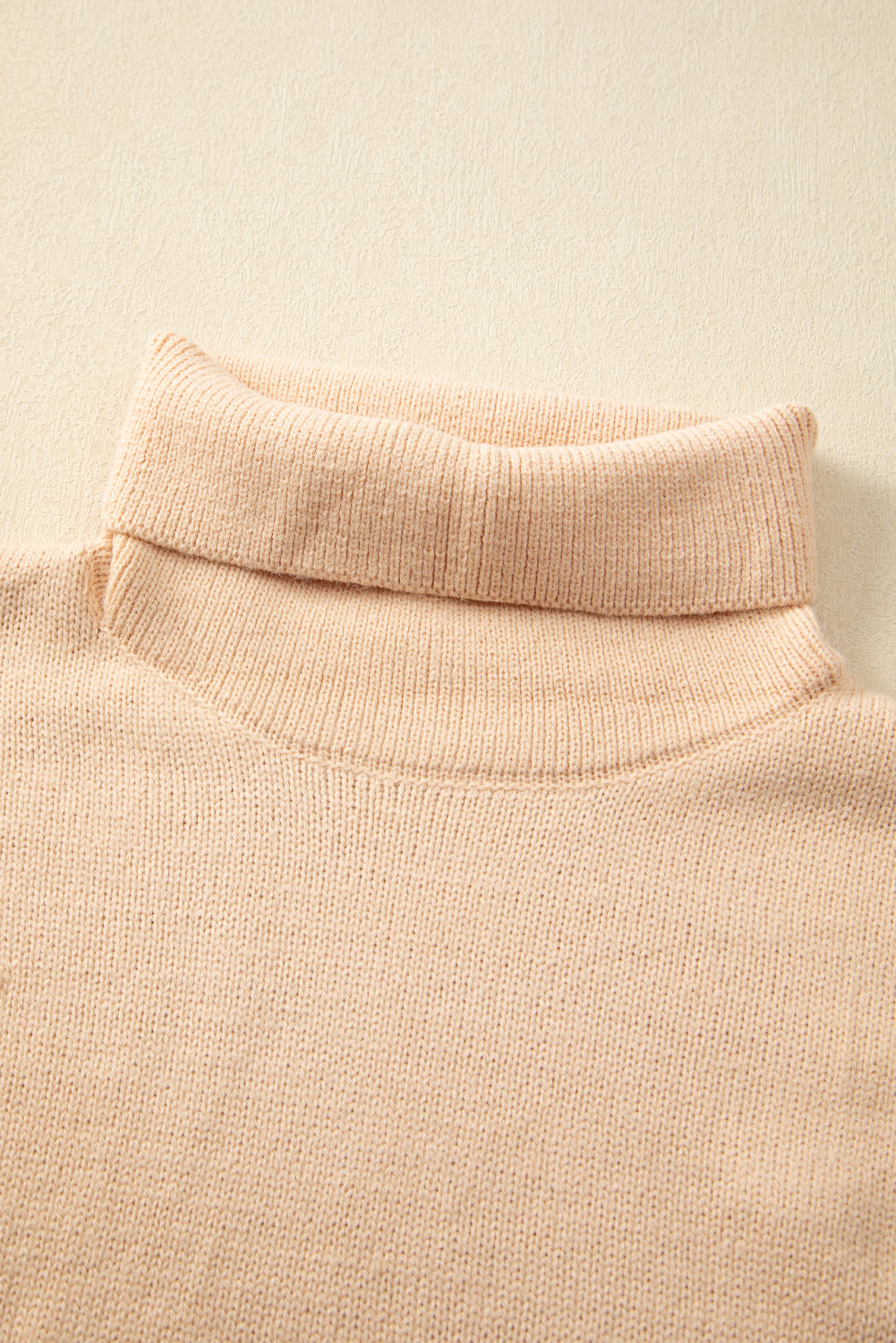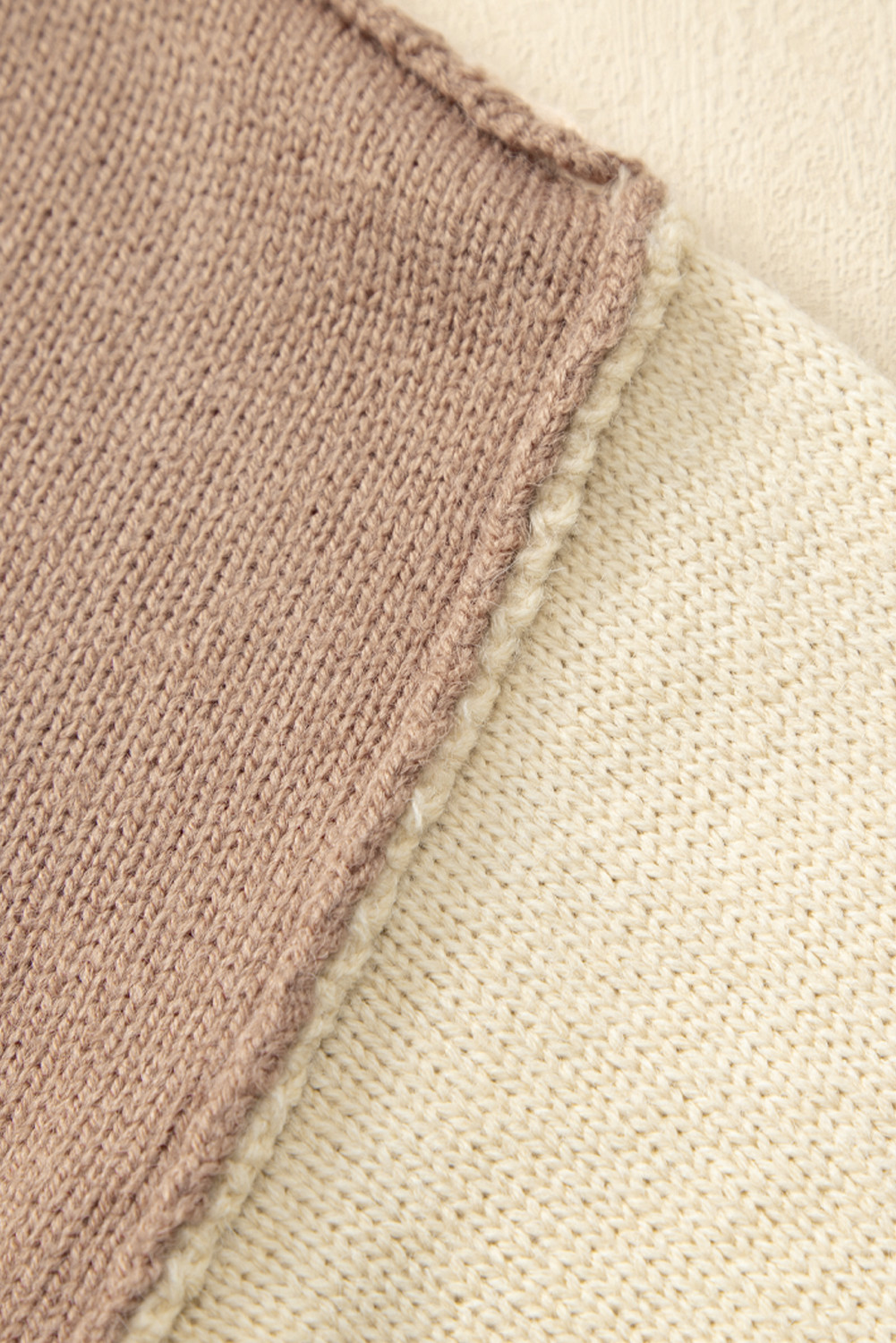 Pale Chestnut Color Block Turtle Neck Drop Shoulder Knit Sweater