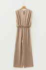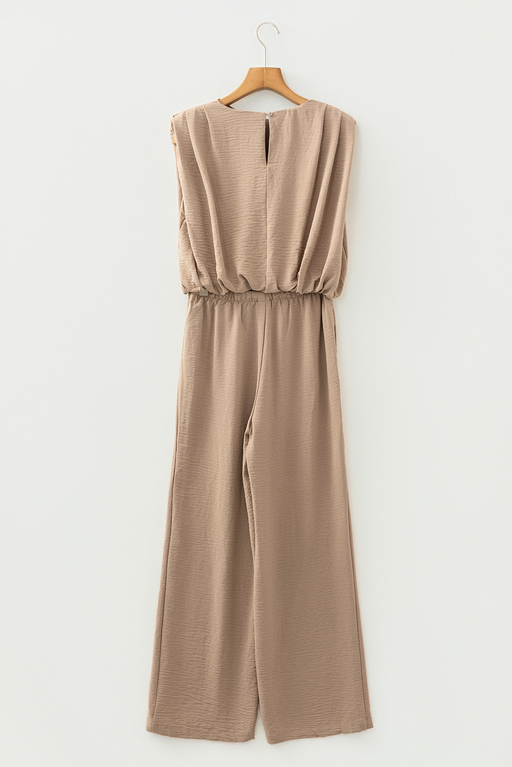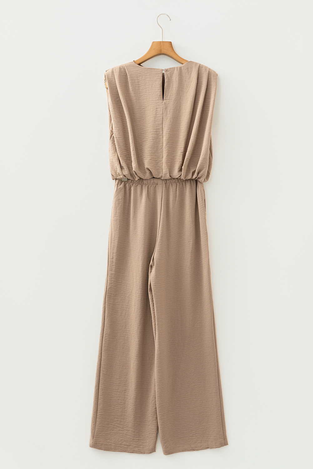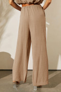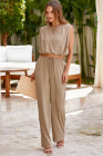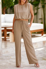 Pale Khaki Solid Color Keyhole Puffy Tank Drawstring Loose Pants 2pcs Outfit