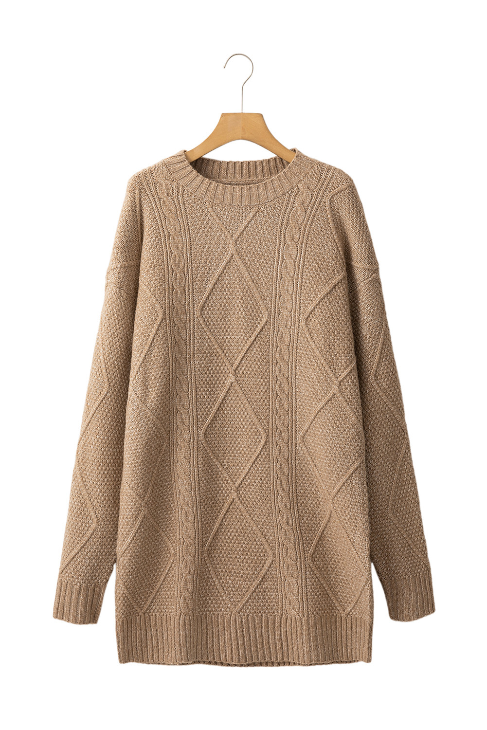 Parchment Cable Knit Drop Shoulder Loose Fit Sweater Dress