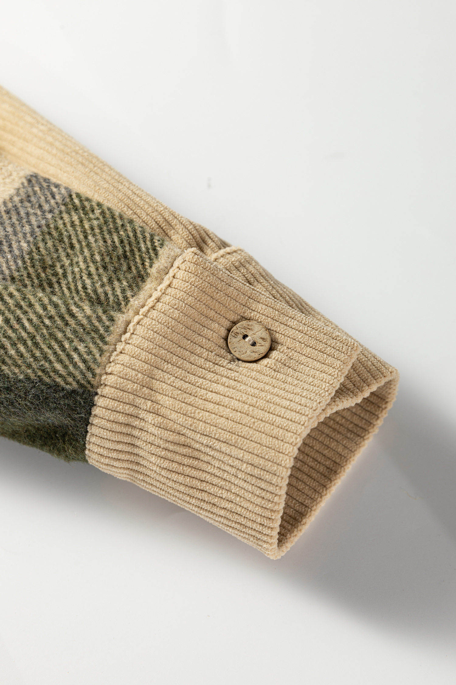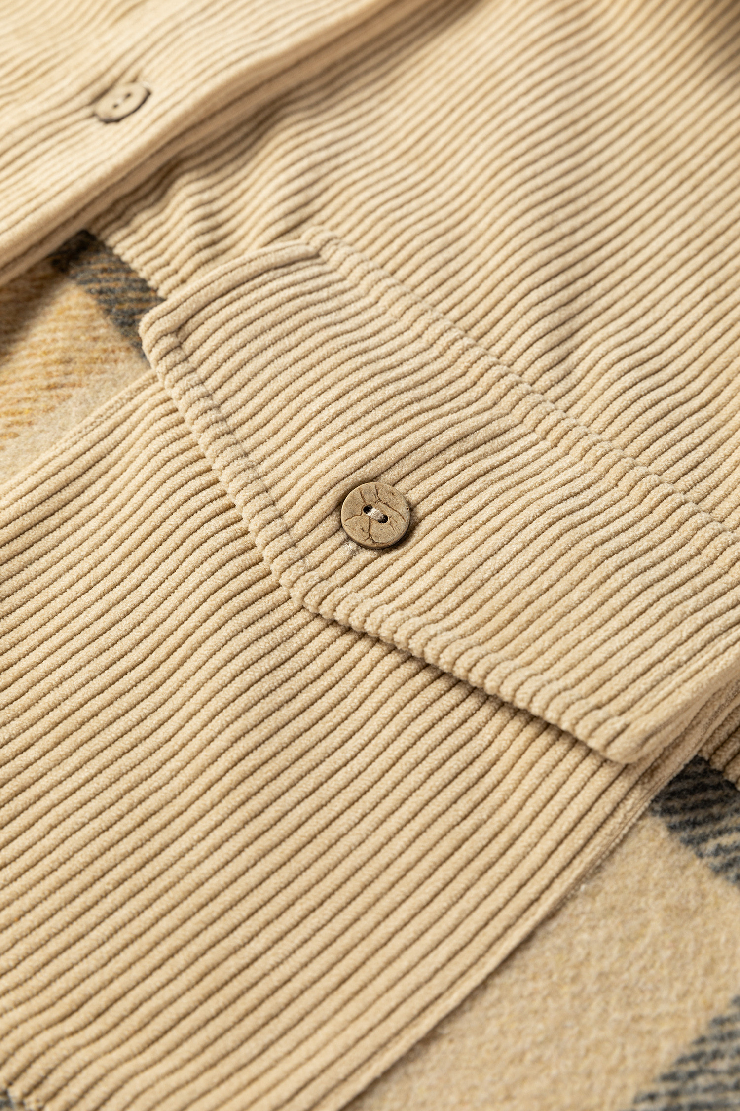 Parchment Retro Plaid Corduroy Patchwork Shacket
