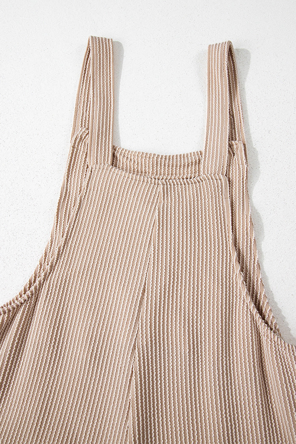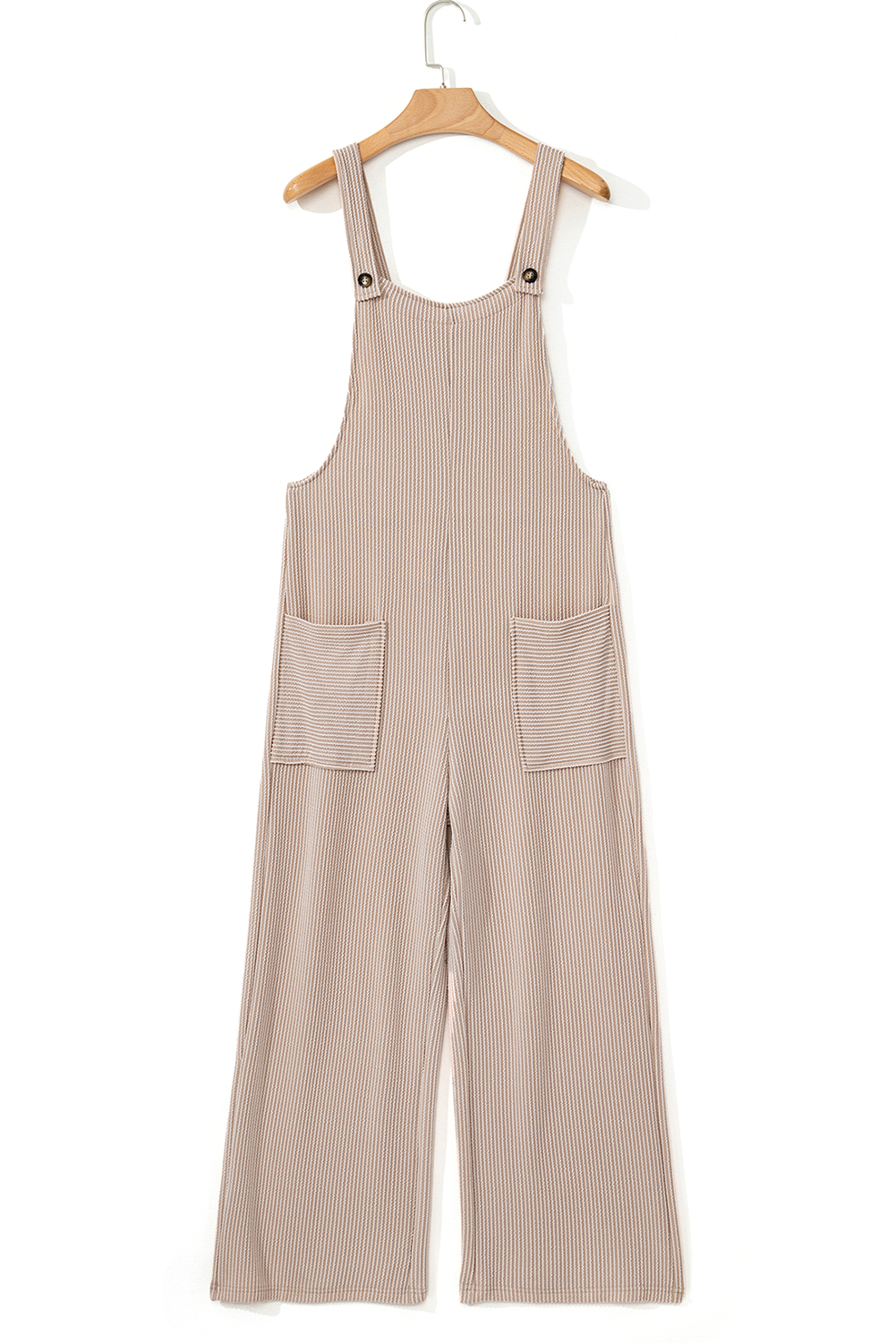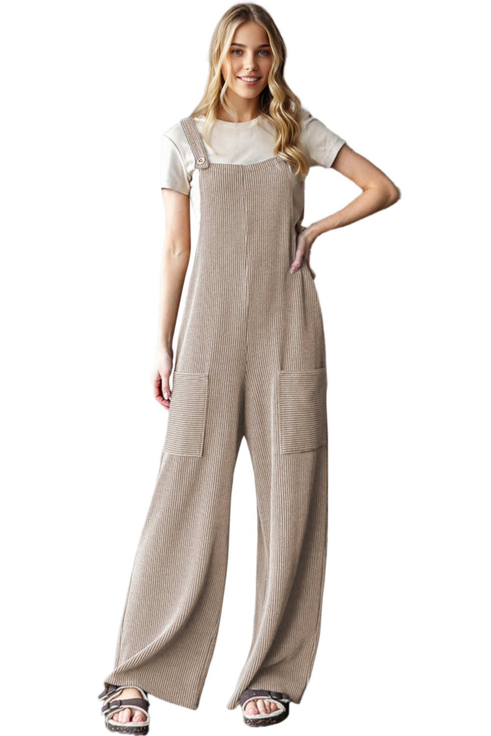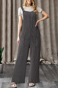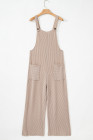 Parchment Ribbed Knit Patched Pocket Wide Leg Overalls