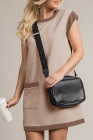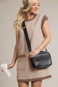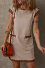 Parchment Stylish Textured Color Block Trim Shift Mini Dress