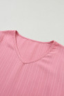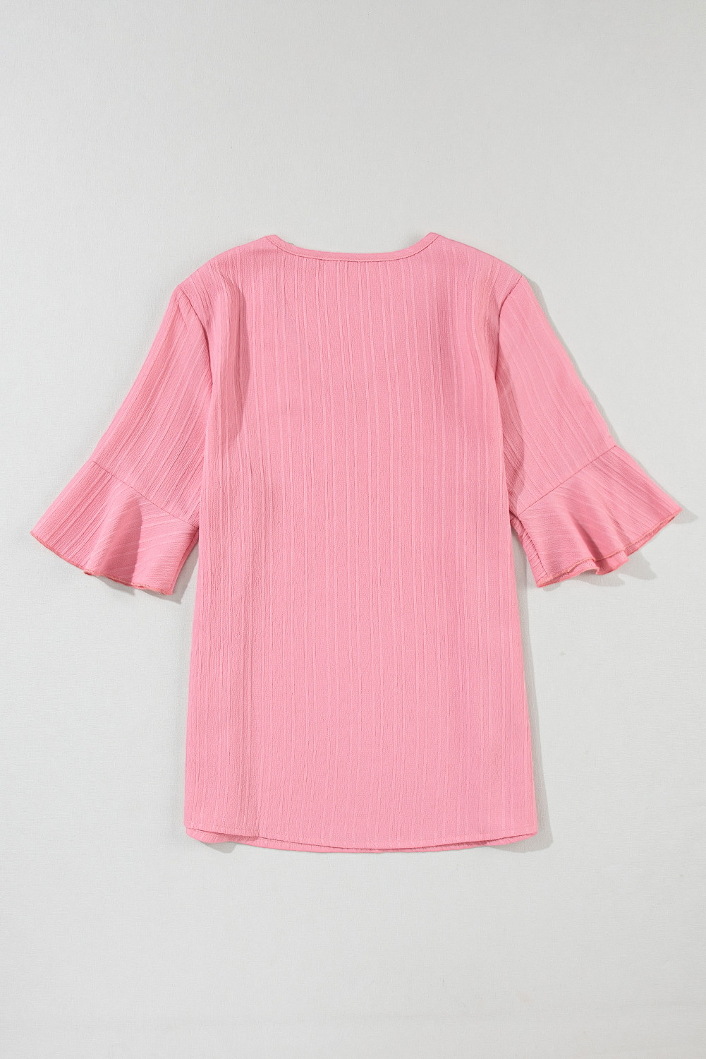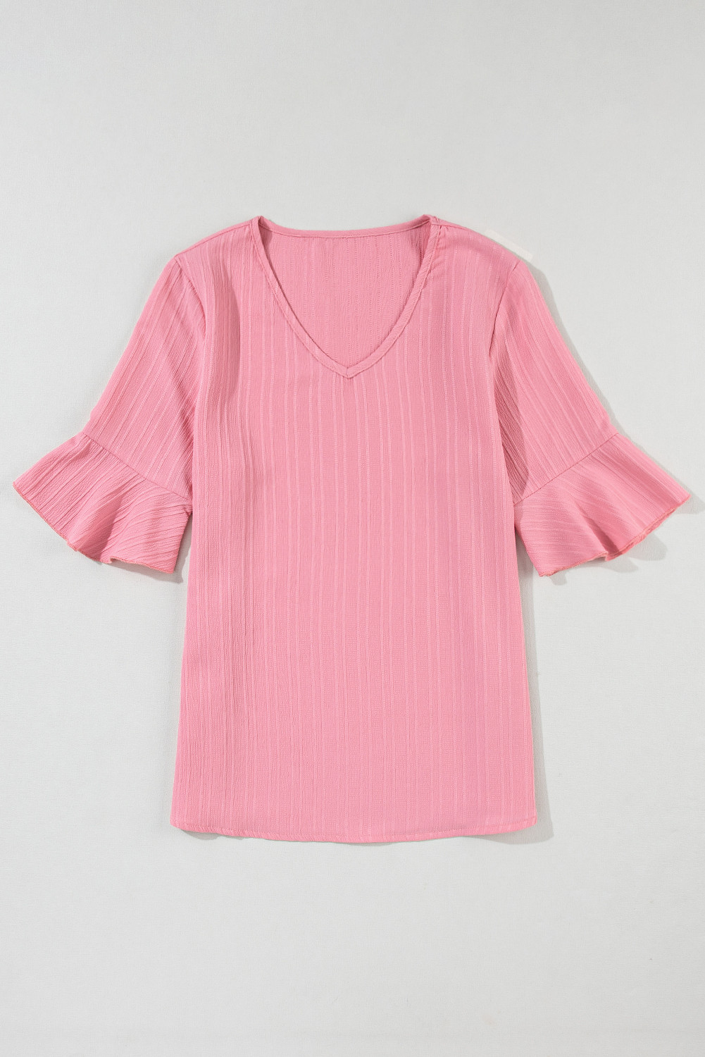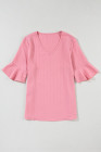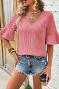Peach Blossom Ruffled Half Sleeve V Neck Textured Top