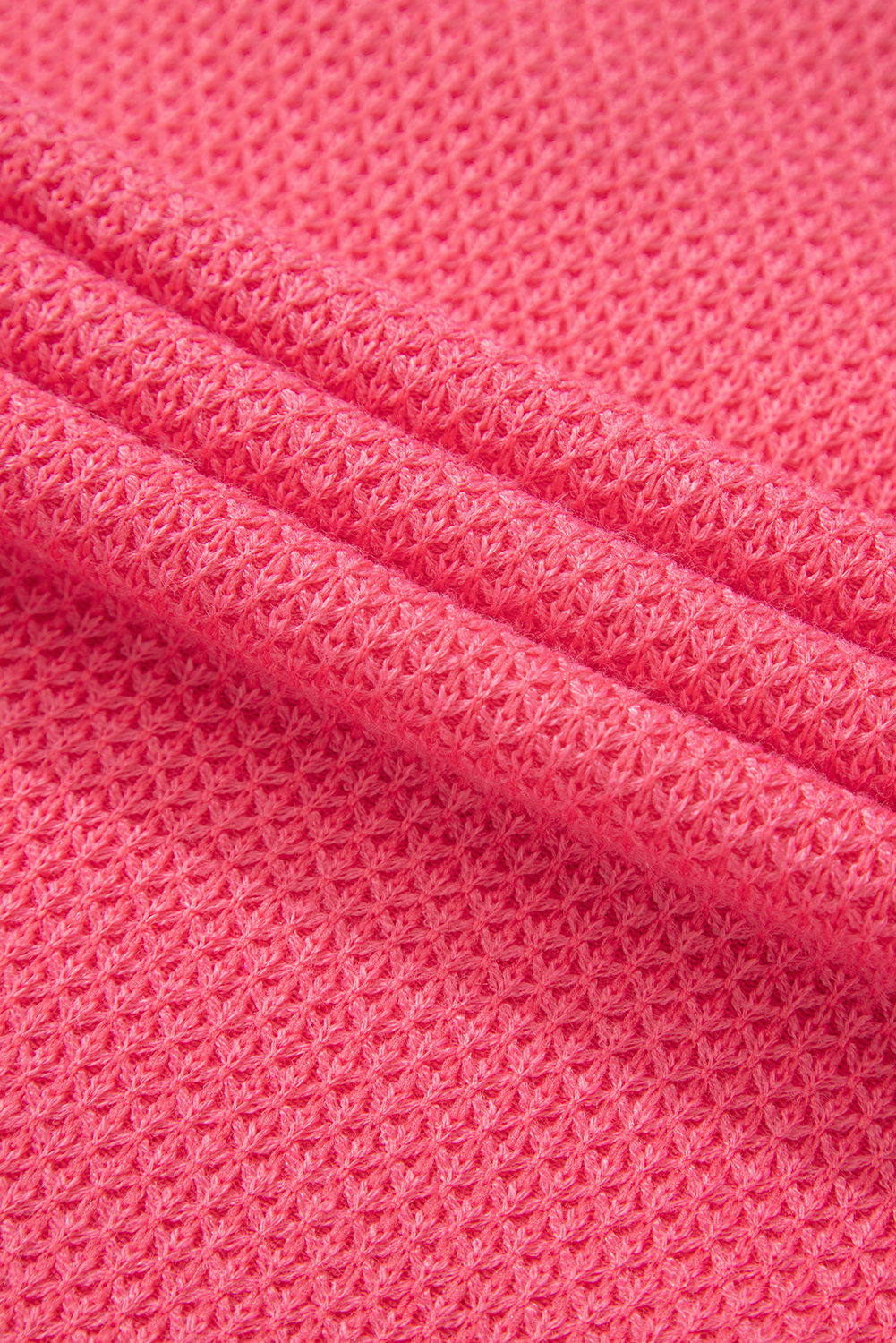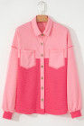 Peach Blossom Two Tone Contrast Waffle Knit Buttoned Loose Shacket