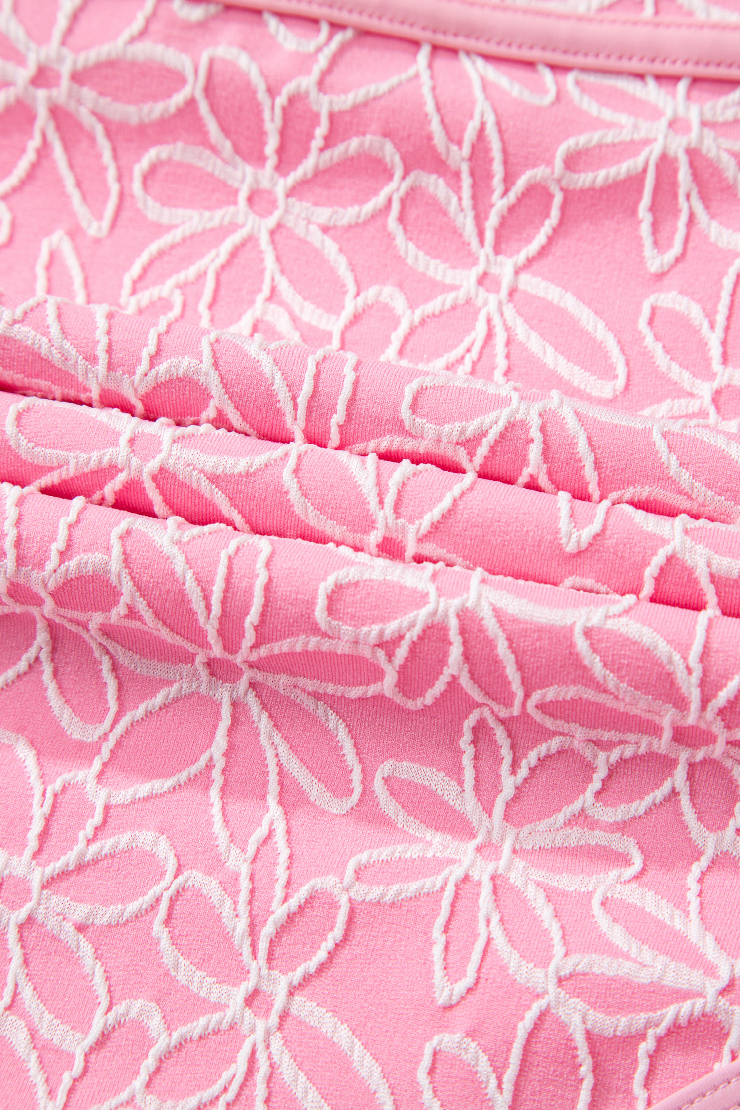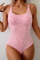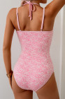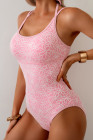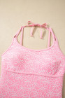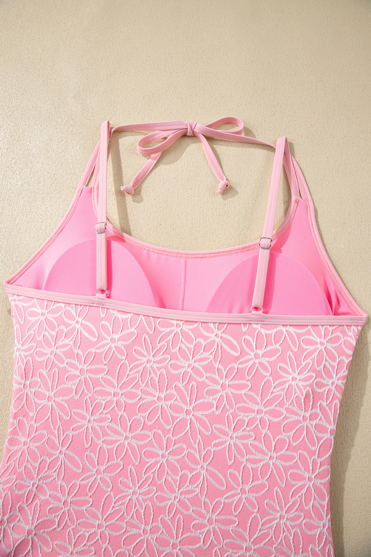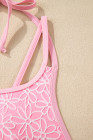 Pink Corded Flower Texture Spaghetti Straps Halterneck One Piece Swimsuit