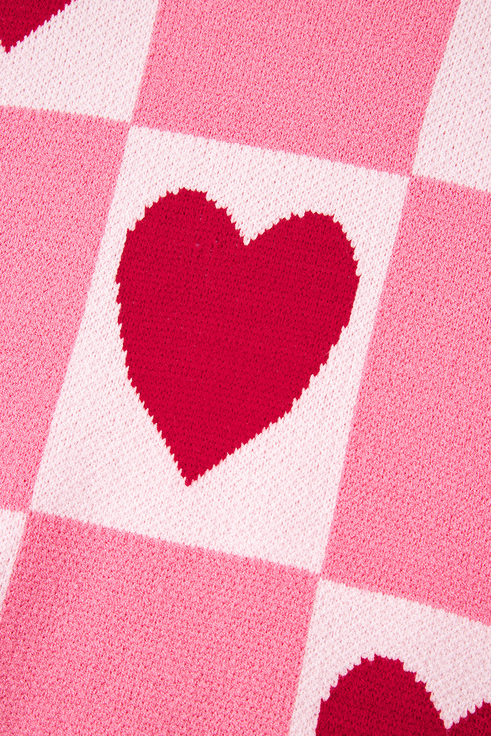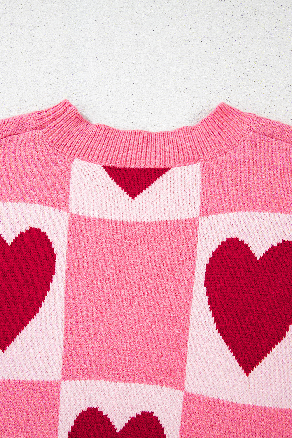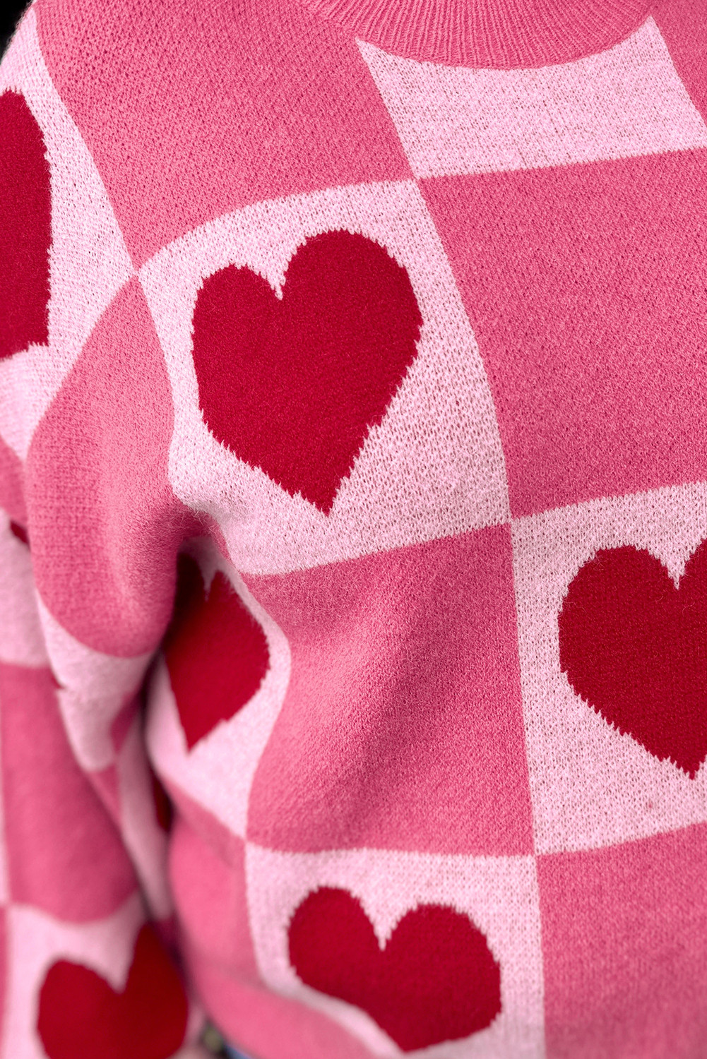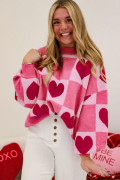 Pink Love Heart Checkered Valentine Crew Neck Sweater
