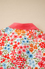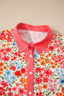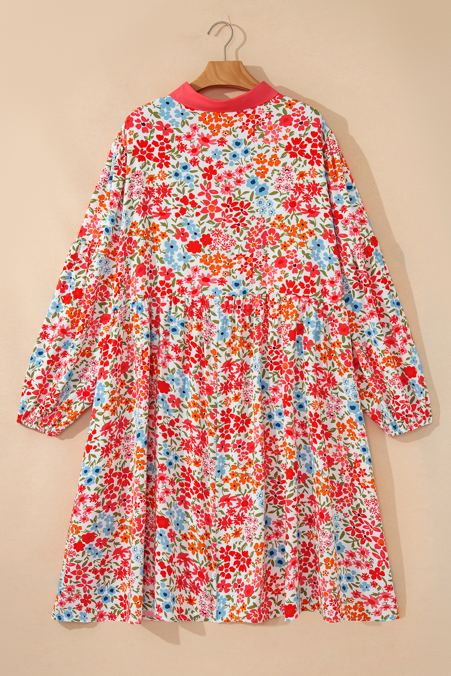 Pink Plus Size Button V Neck Leopard Print Puff Sleeve Loose Mini Dress