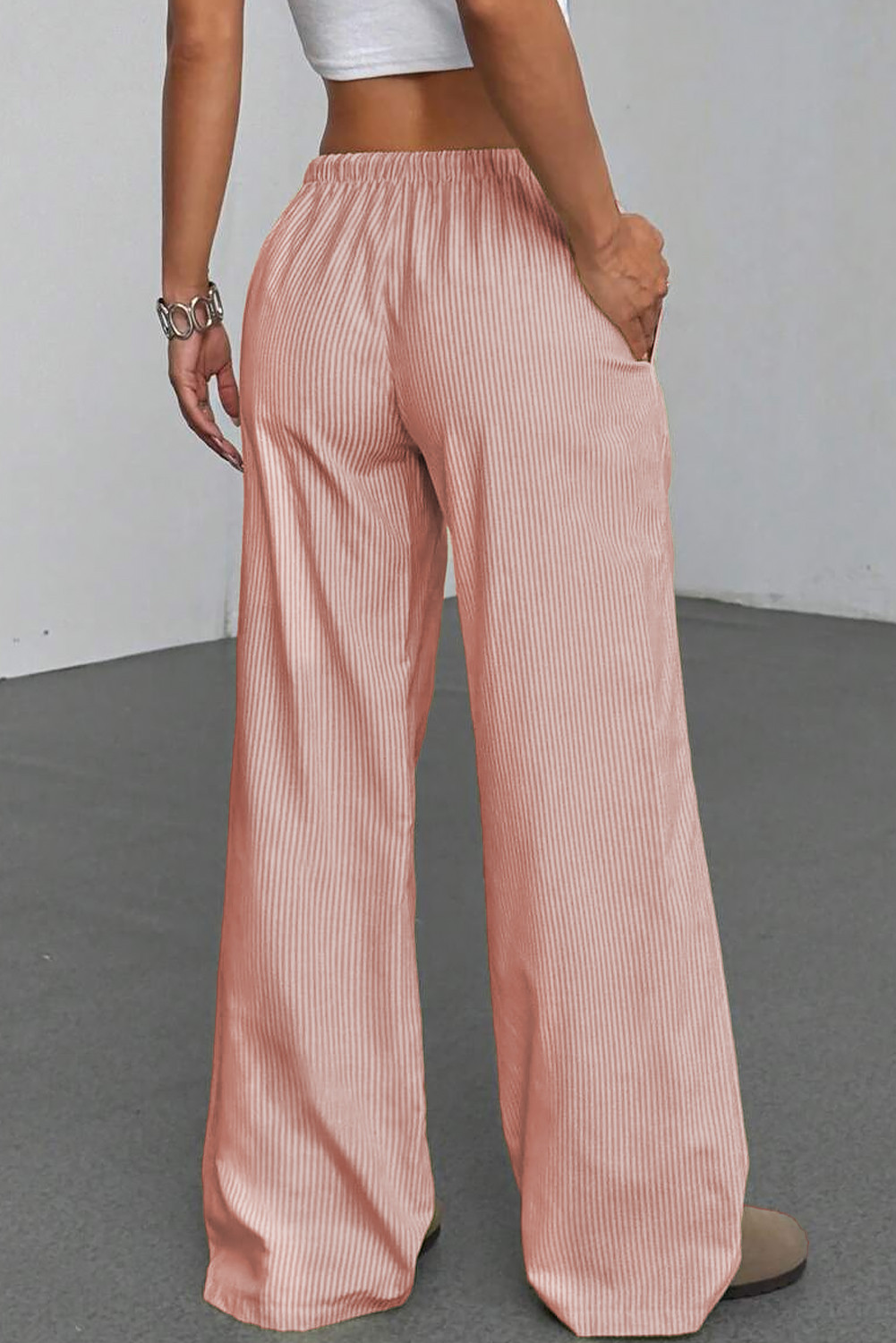Pink Stripe Drawstring Plus Size Loose Pants