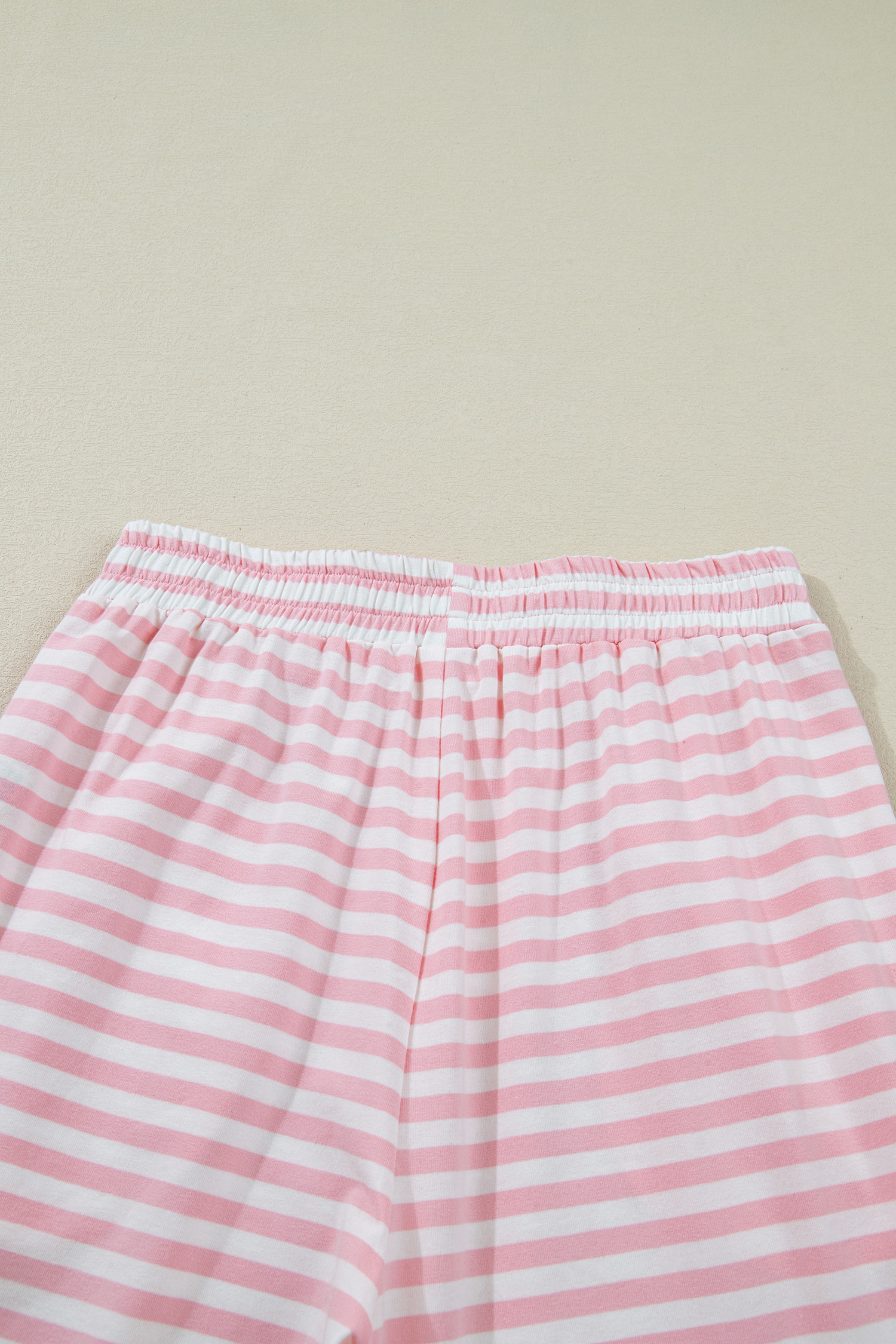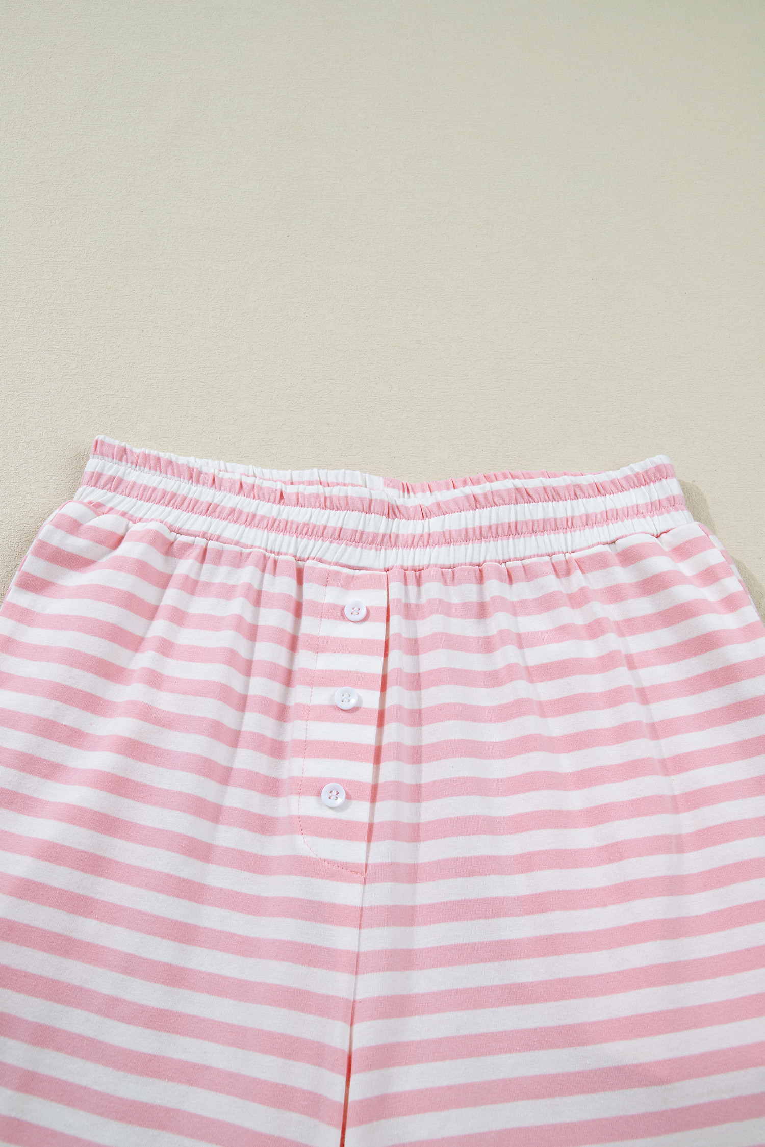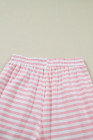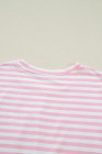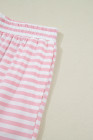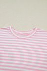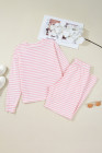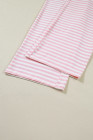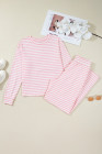 Pink Stripe Drop Shoulder Round Neck Top and Buttoned Straight Pants Two Piece Set
