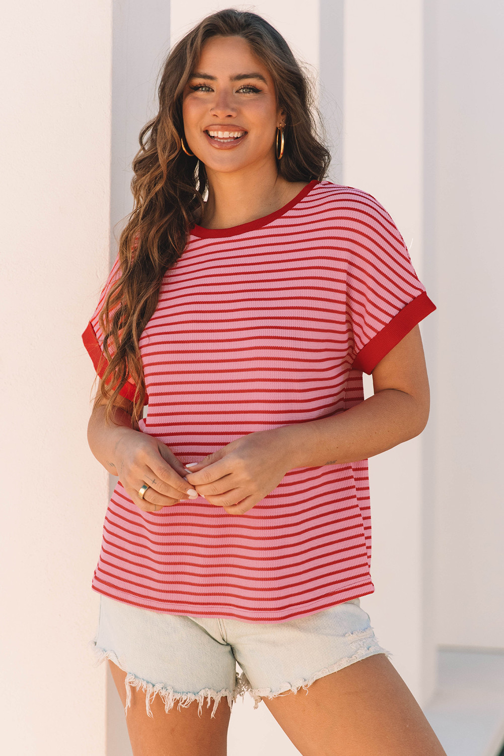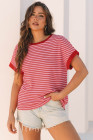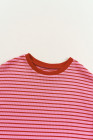 Pink Stripe Knitted Round Neck T Shirt