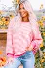 Pink Stripe Loose Drop Shoulder Long Sleeve Top