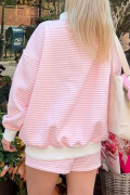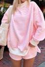 Pink Stripe Oversize Mock Neck Sweatshirt and Shorts Set