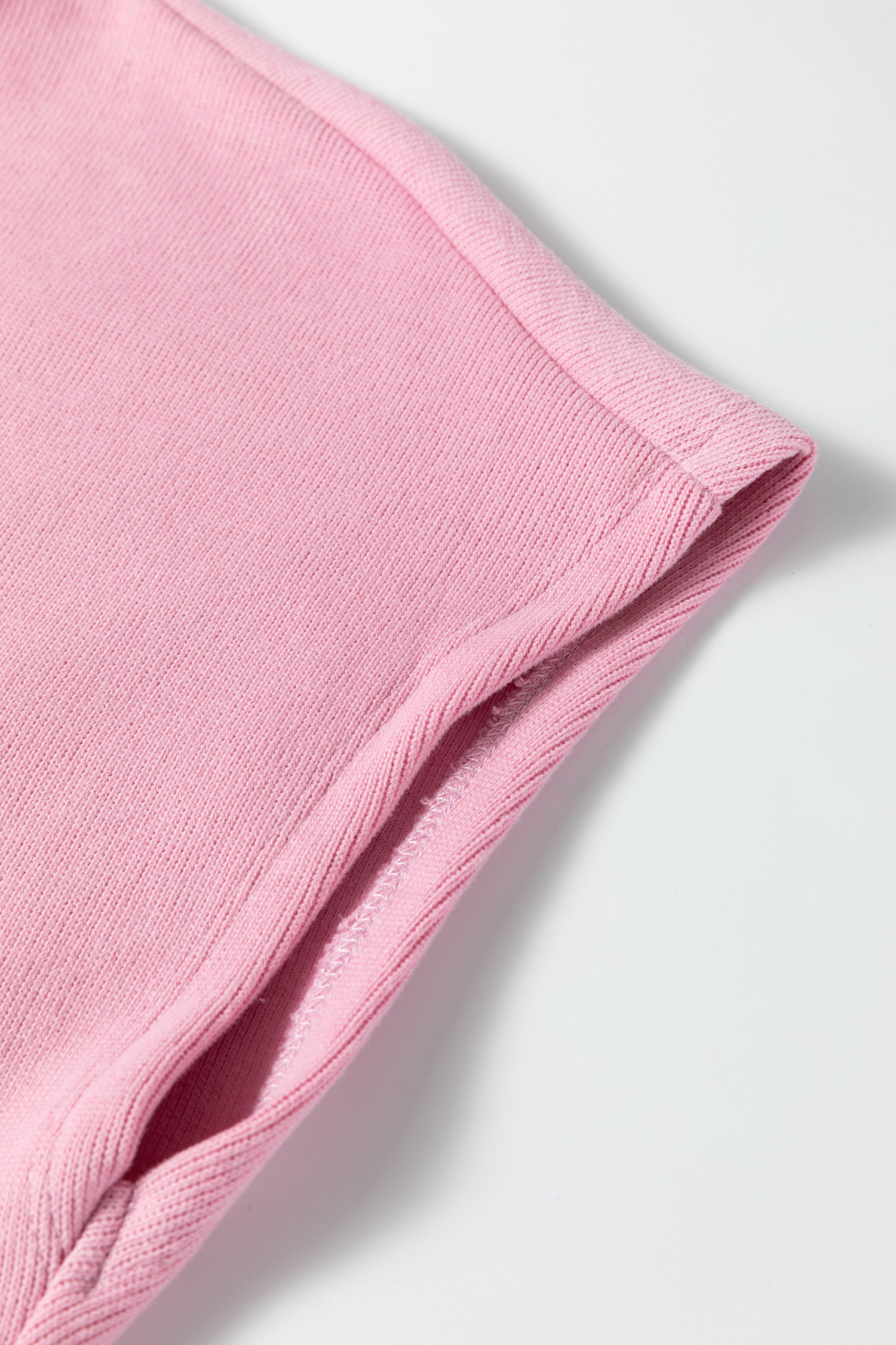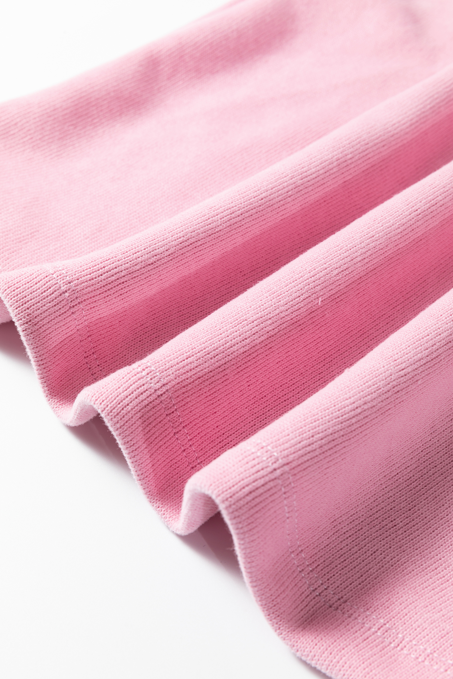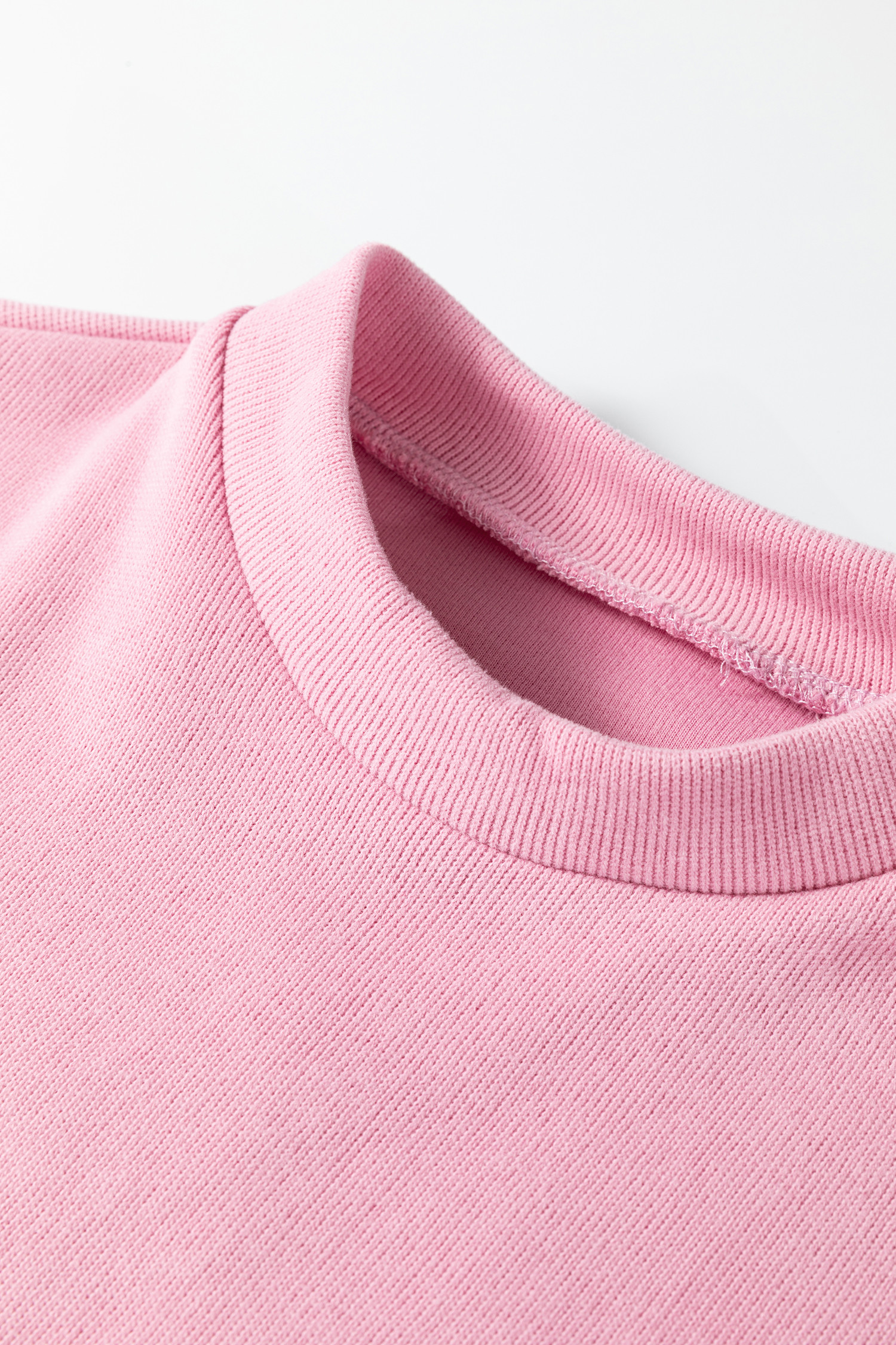 Pink Textured Knit High Neck Loose Tee Elastic Waist Loose Pant Set