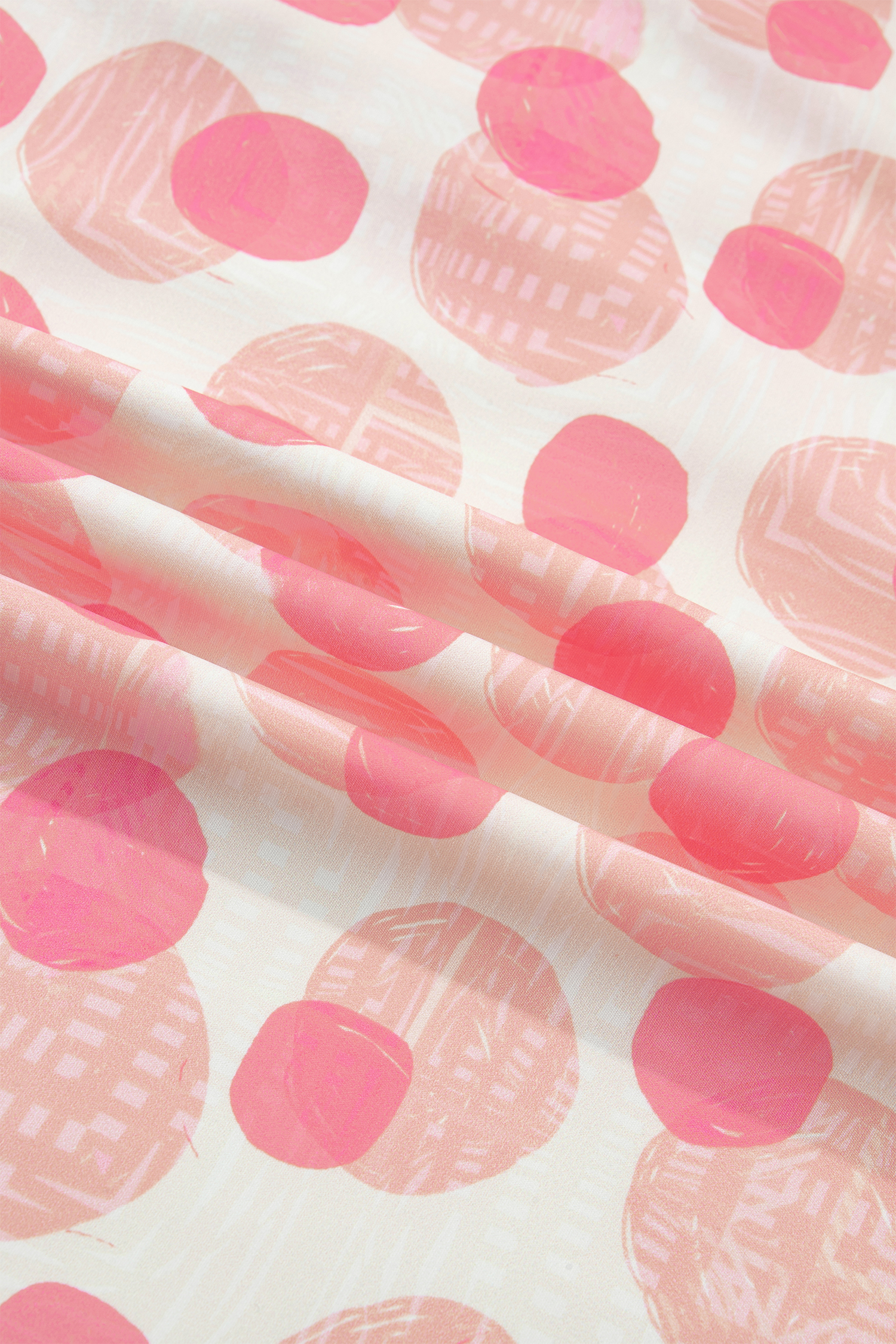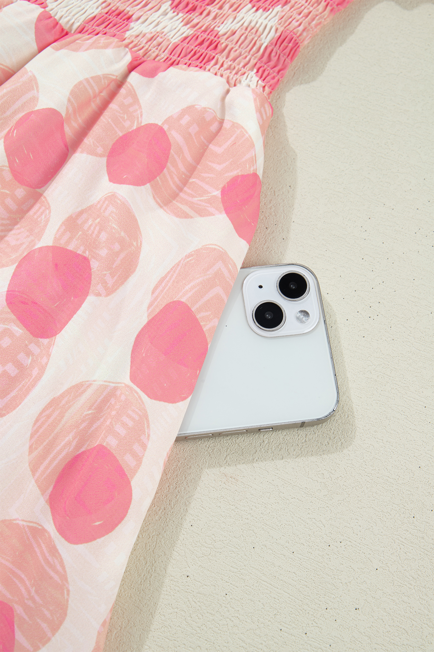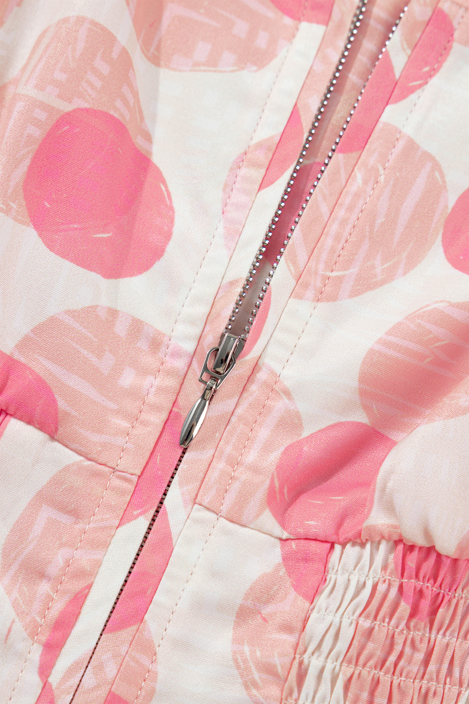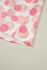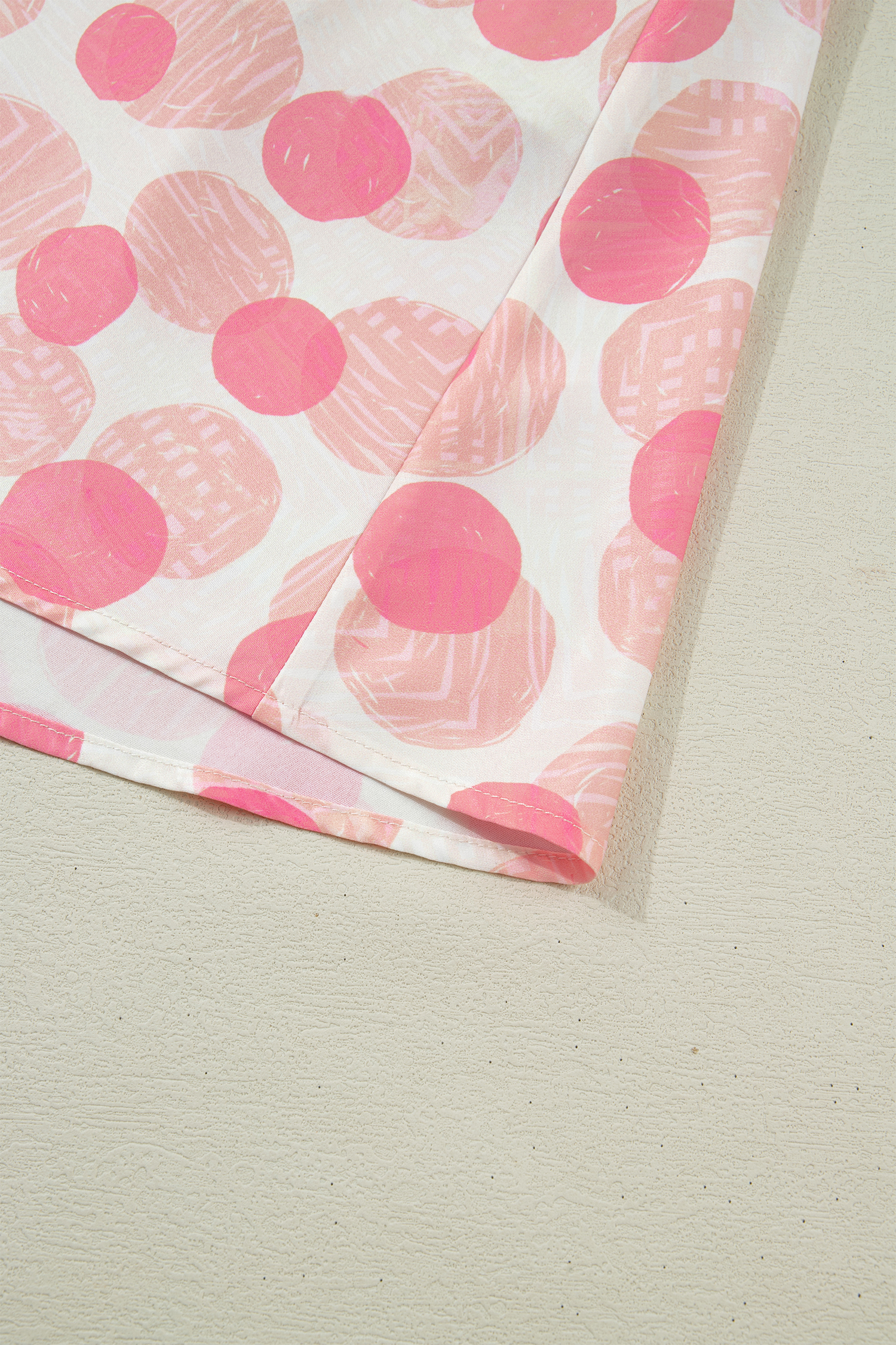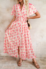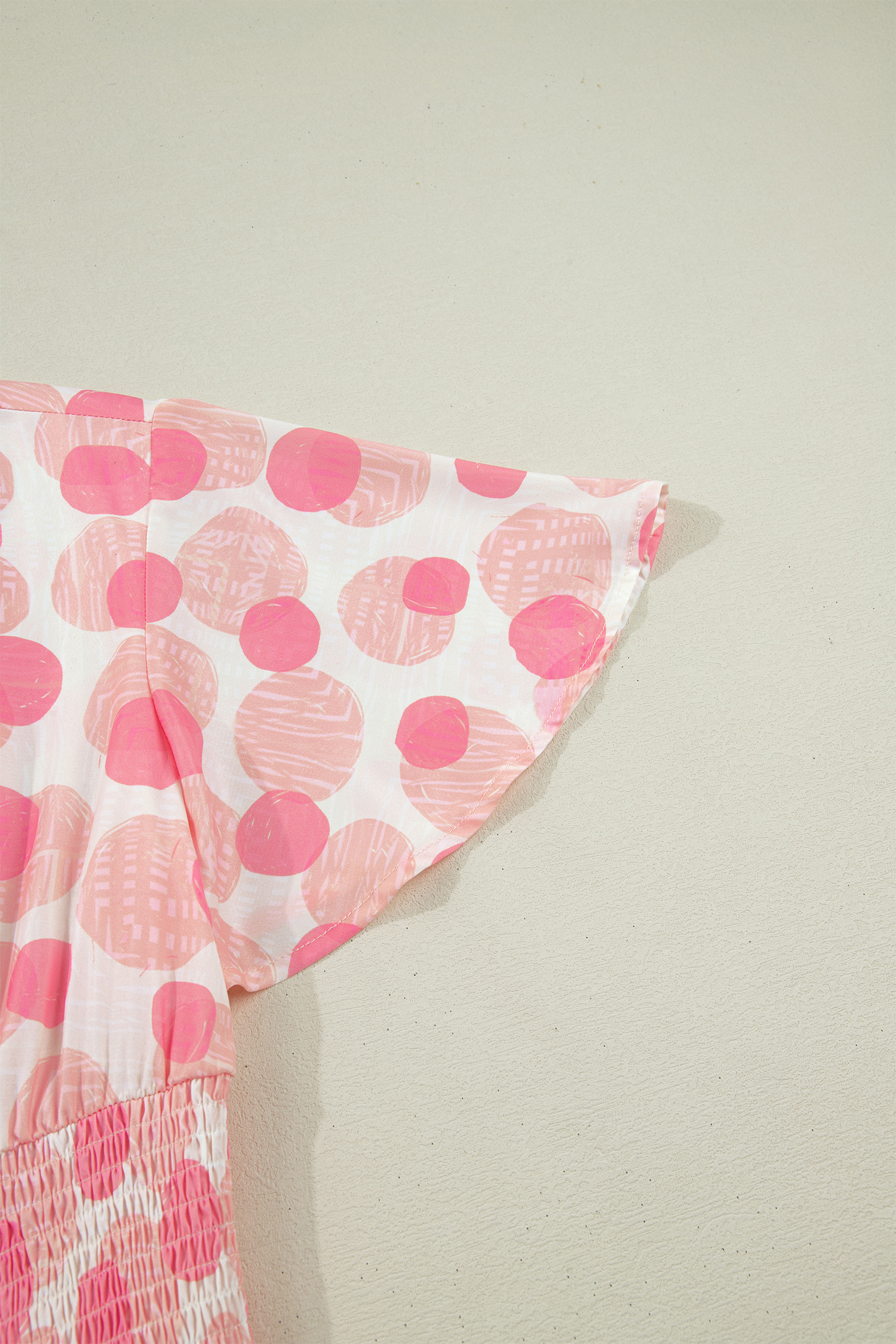 Pink Polka Dot Printed Ruffle Short Sleeve Zip Up Long Dress