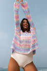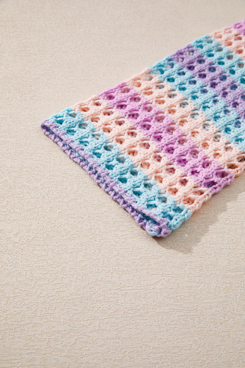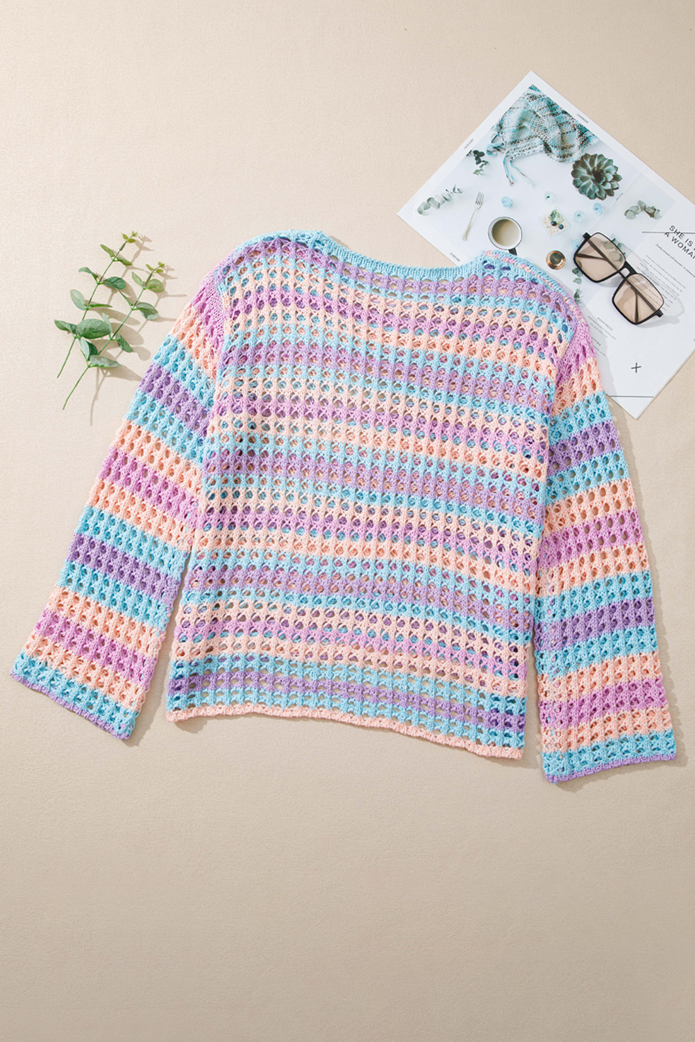 Purple Multi Stripe Open Knit Sweater Beach Cover Up