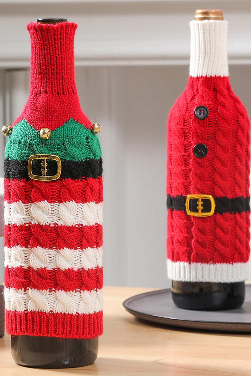 Racing Red Christmas Stripes Knitted Jingle Bell Wine Bottle Sleeve