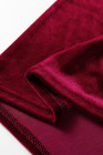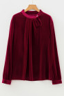 Red Dahlia Asymmetric Button Keyhole Neck Long Sleeve Velvet Blouse