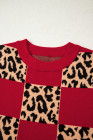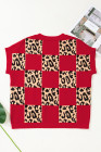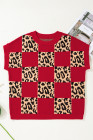 Red Leopard Checkerboard Short Sleeve Knit Sweater