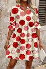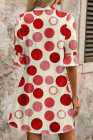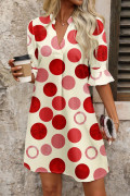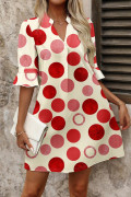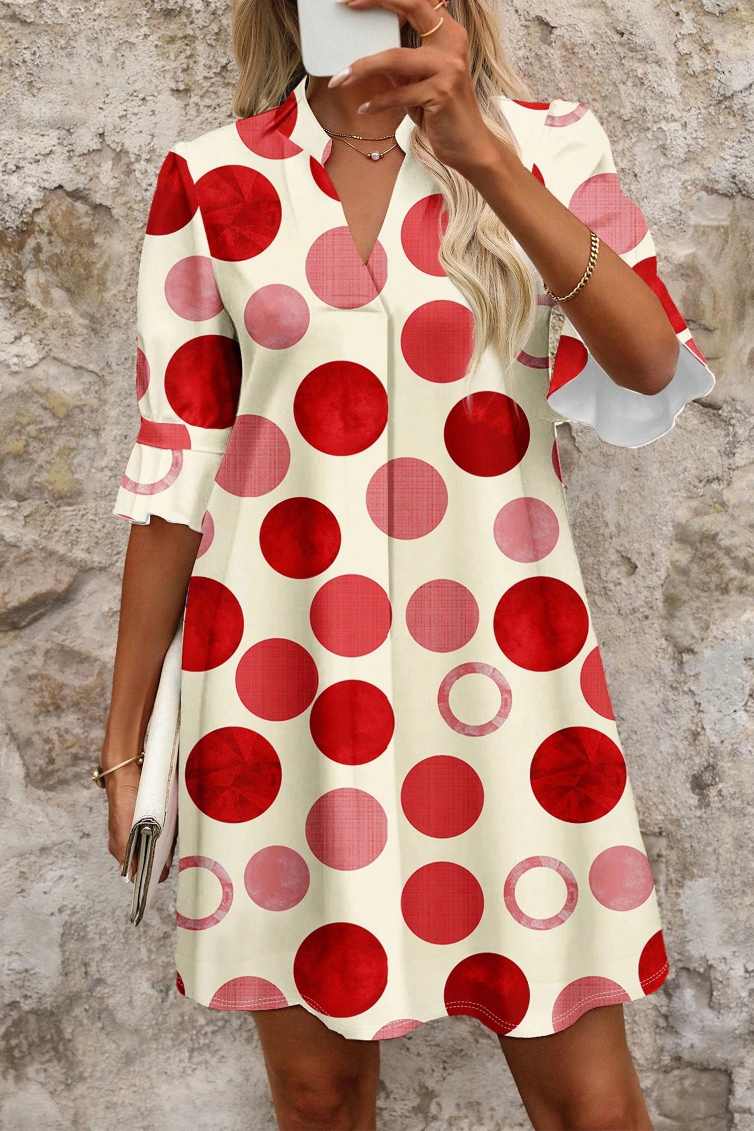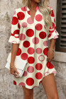 Red Pinched V Neck Polka Dot Print Flounced Half Sleeve Casual Vacation Style Mini Dress