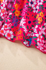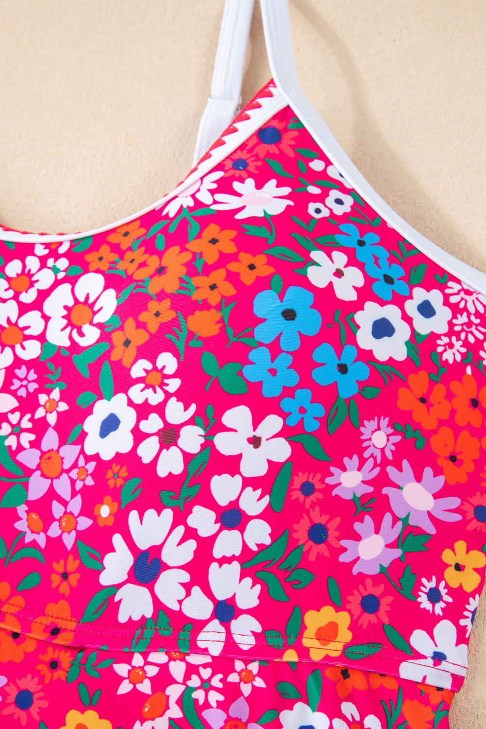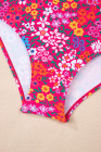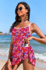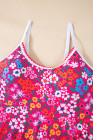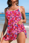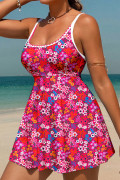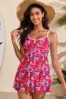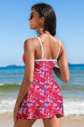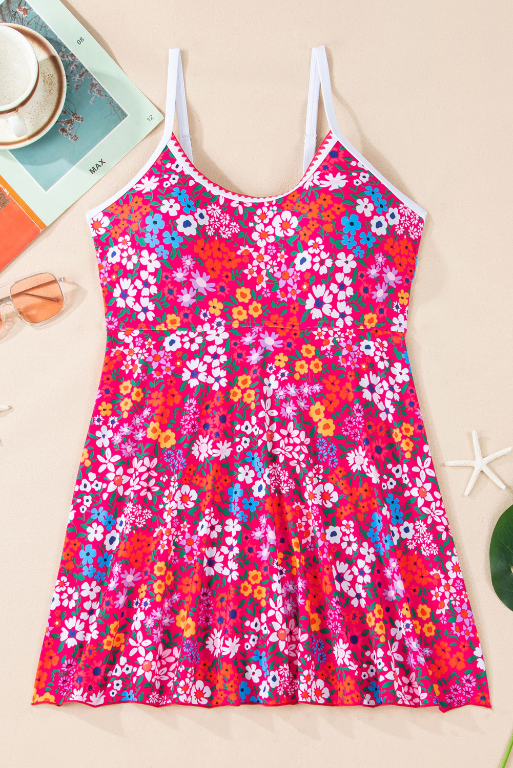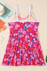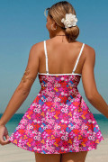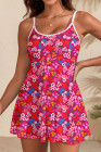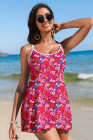 Rose Floral Print Ricrac Trim Spaghetti Strap One Piece Swim Dress