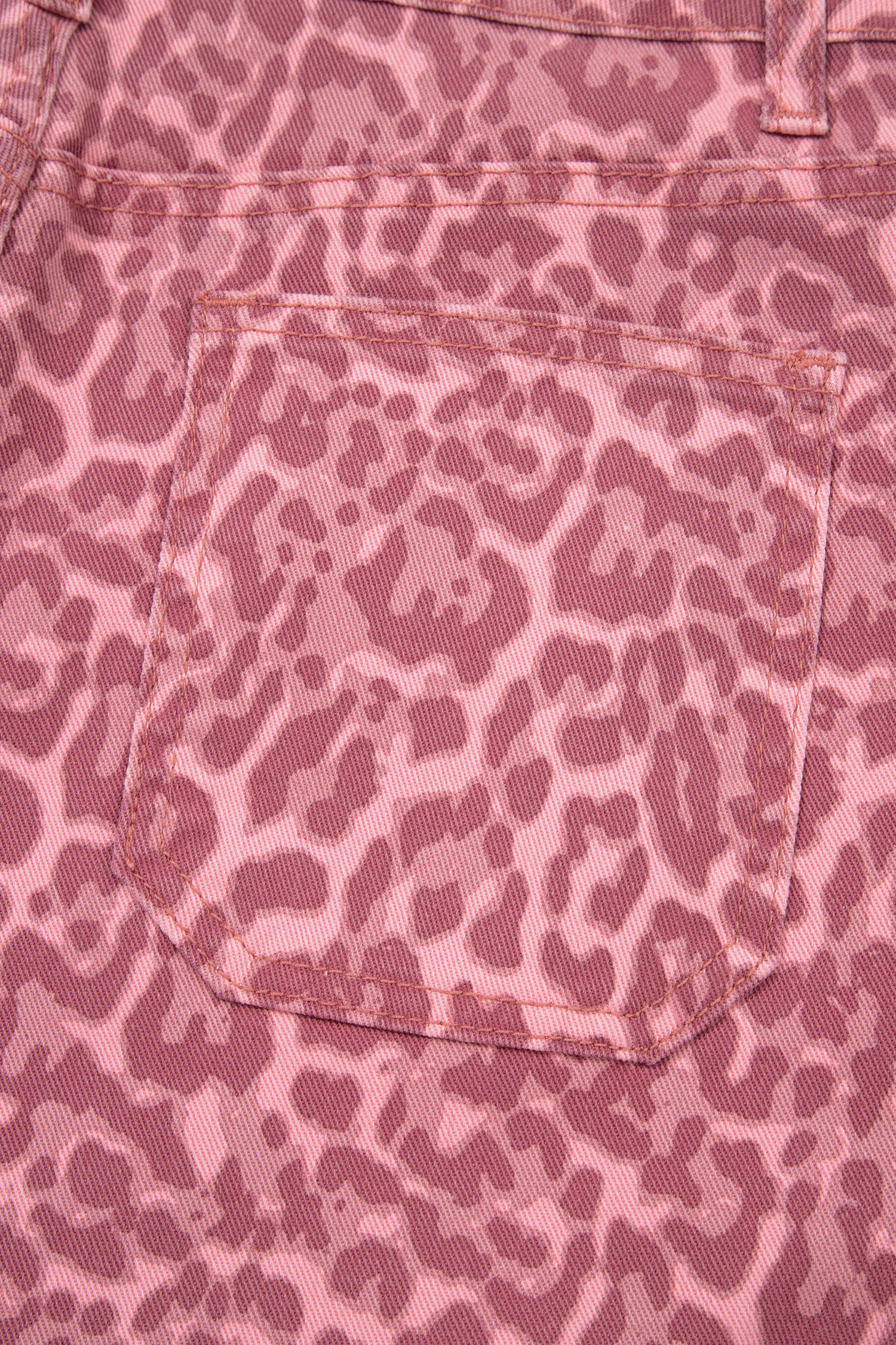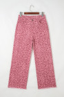 Rose Leopard Frayed Edge Wide Leg High Waist Jeans