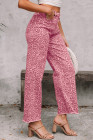 Rose Leopard Frayed Edge Wide Leg High Waist Jeans
