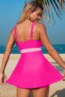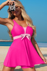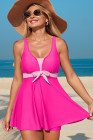 Rose Red Color Block Patchwork Bow Knot Detail Sleeveless Swim Dress