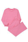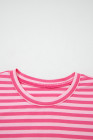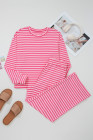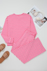 Rose Stripe Drop Shoulder Round Neck Top and Buttoned Straight Pants Two Piece Set