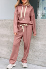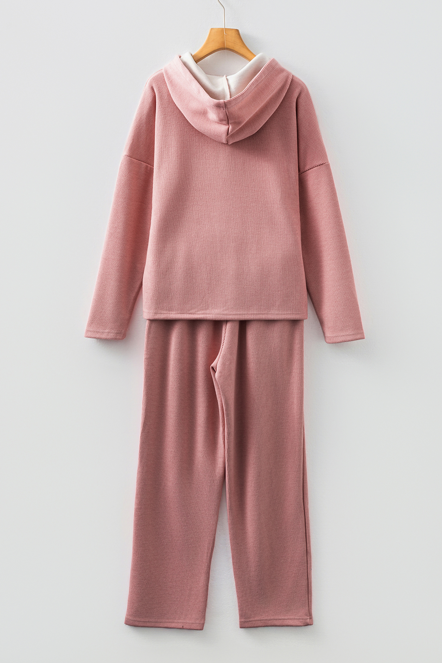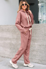 Rose Tan Lace Drawstring Pullover Hoodie and High Waist Pants Corduroy Suit