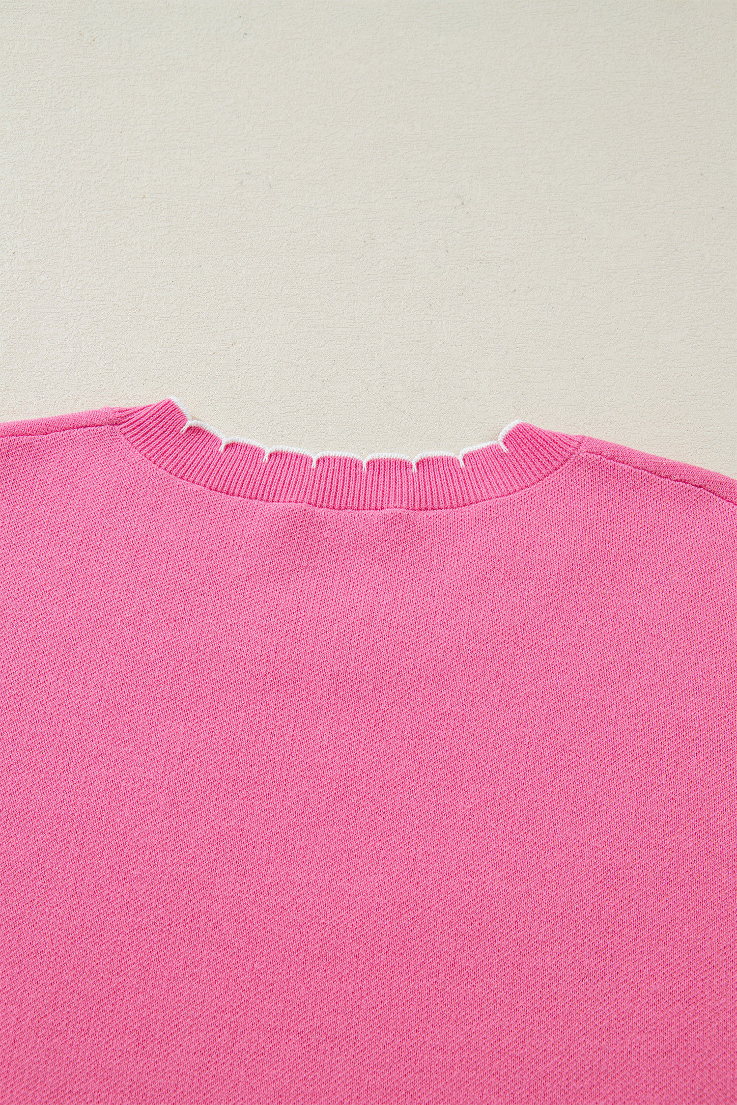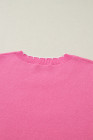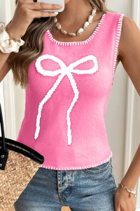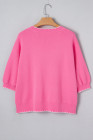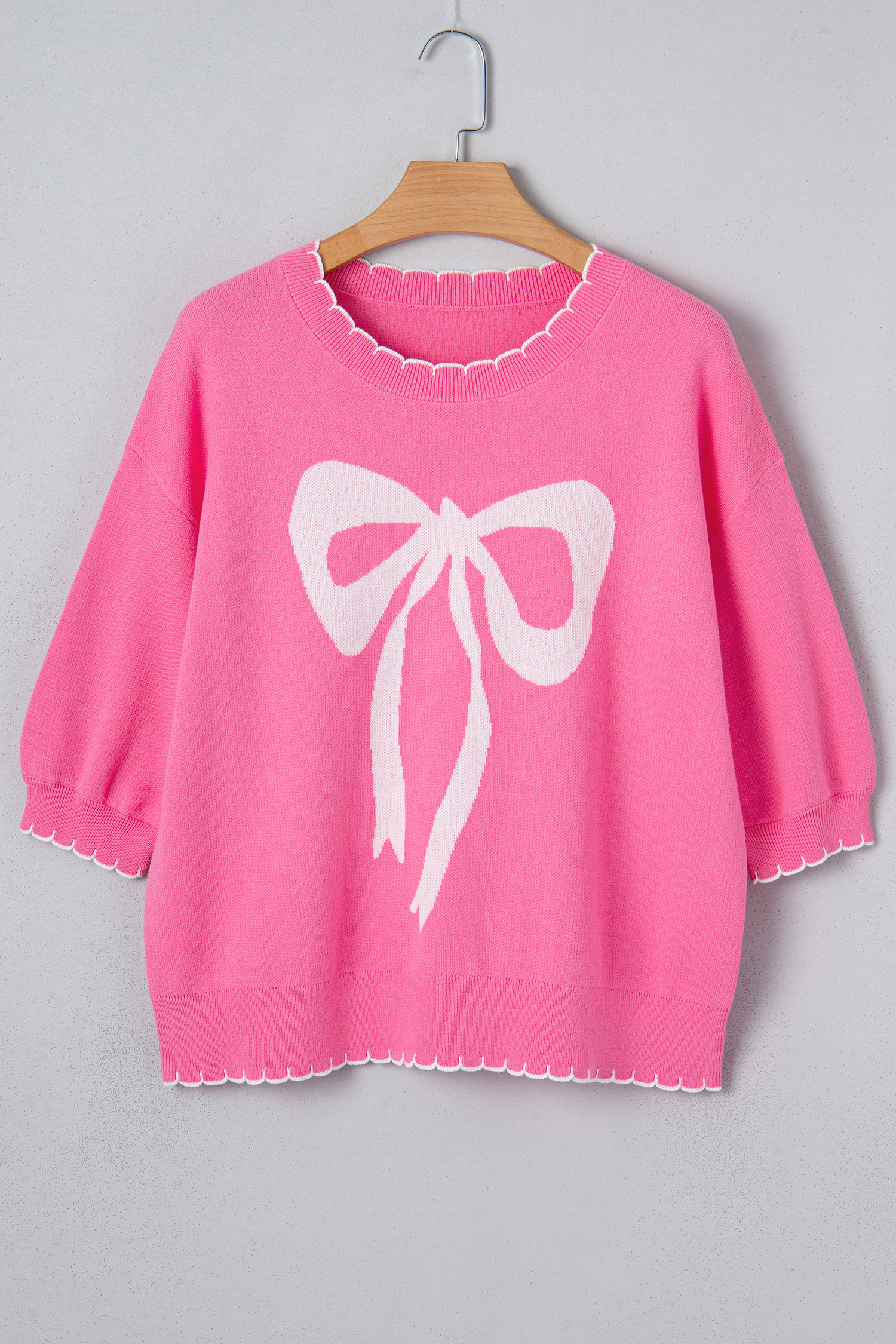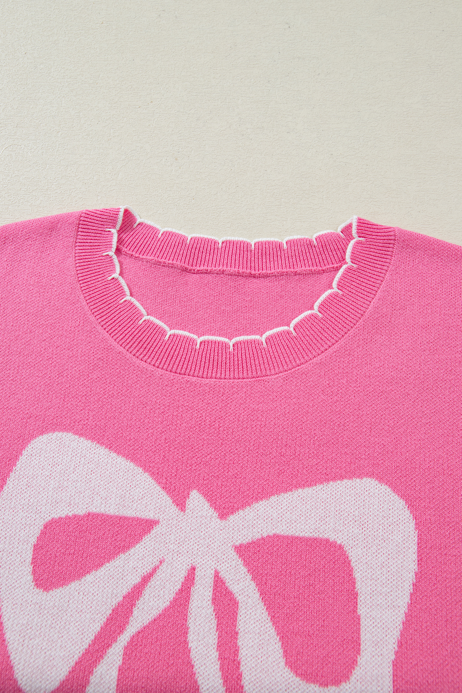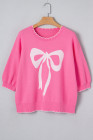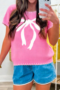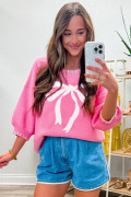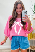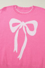Sachet Pink Big Ribbon Bow Print Contrast Stitch Trim Drop Shoulder Sweater