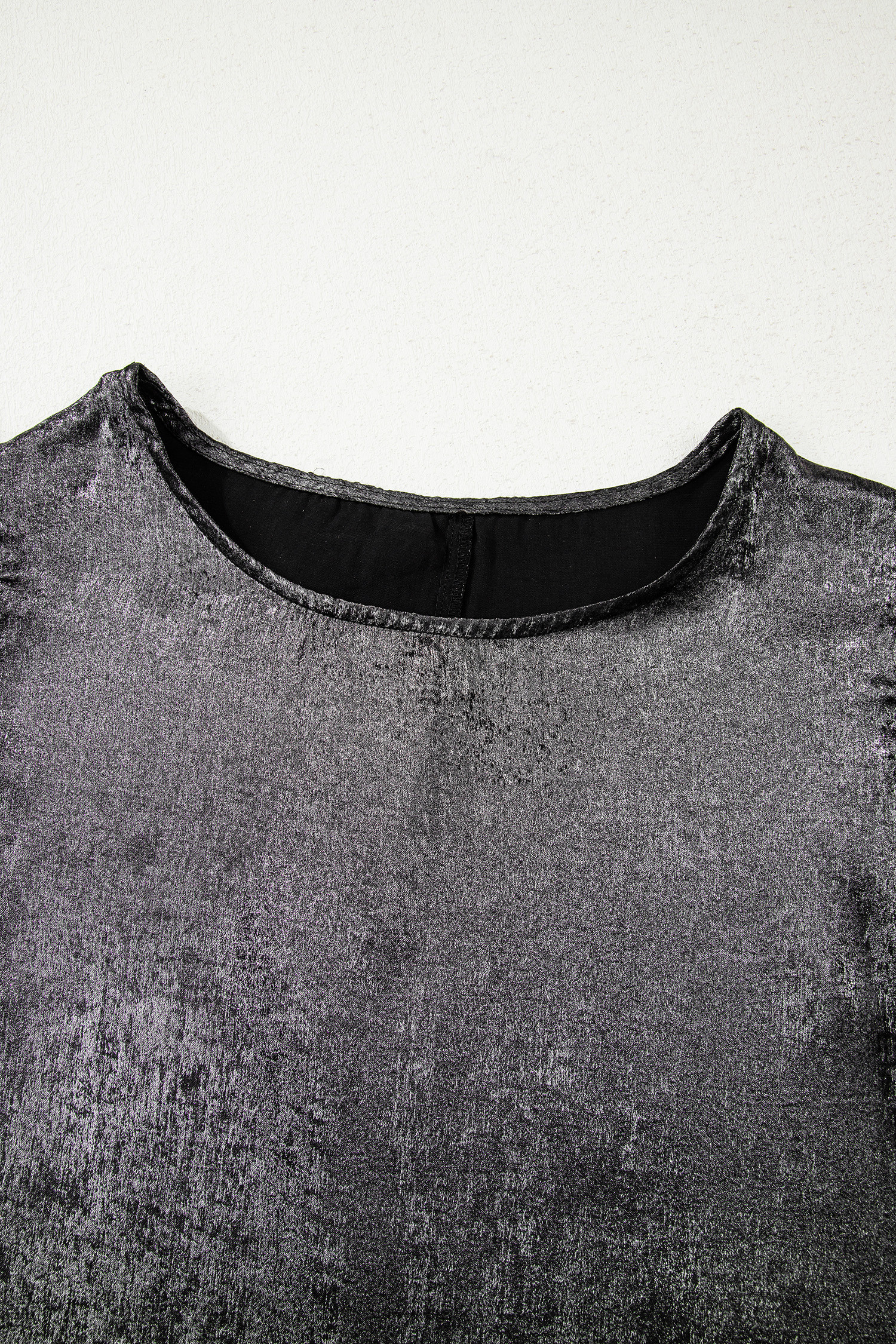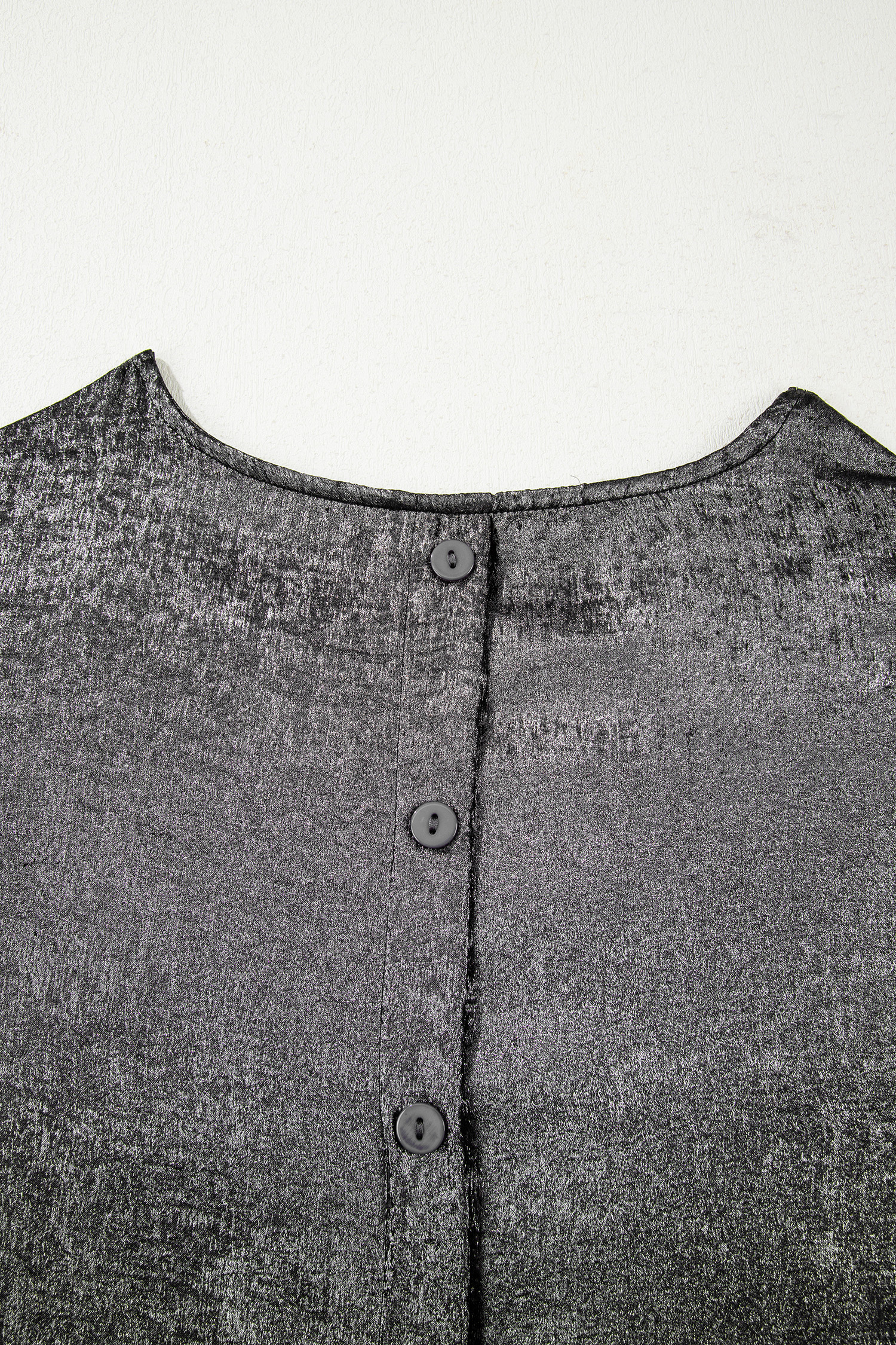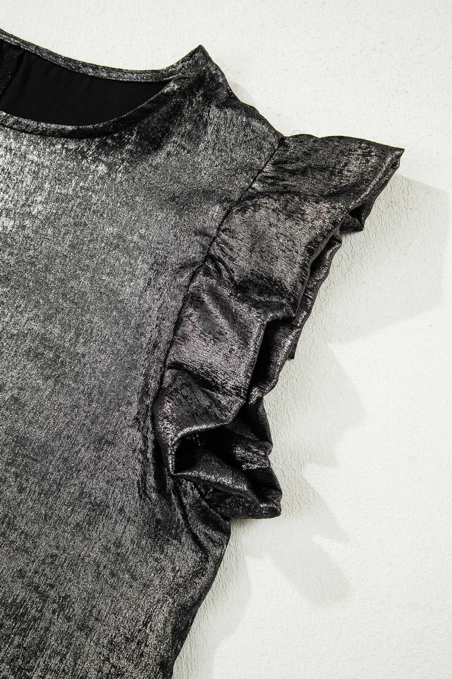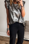 Silvery Metallic Round Neck Ruffle Trim Sleeveless Top