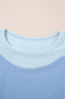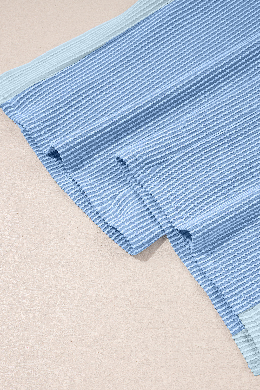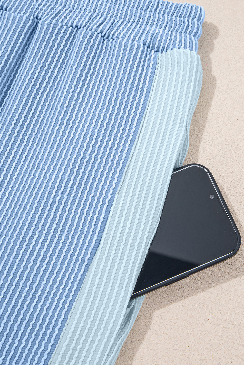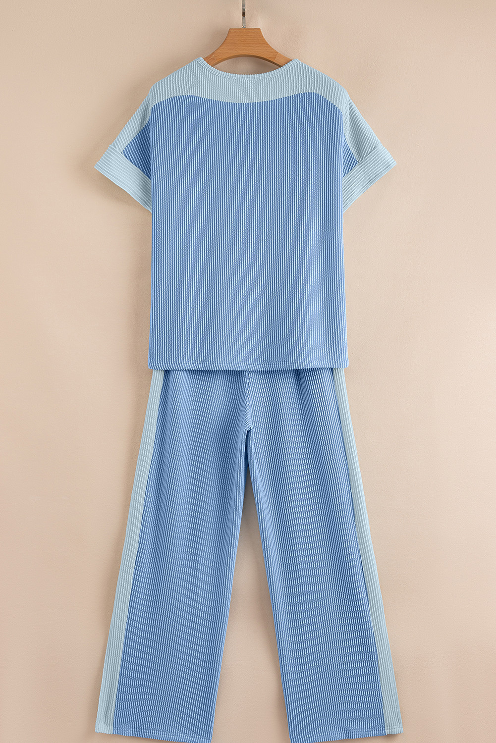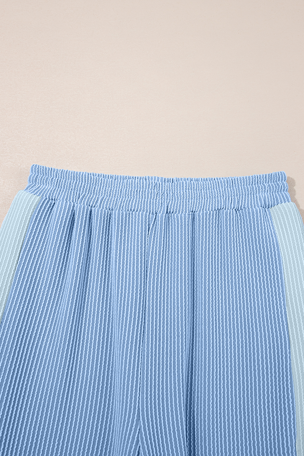 Sky Blue 2-tone Colorblock Patchwork Corded 2pcs Outfit