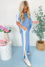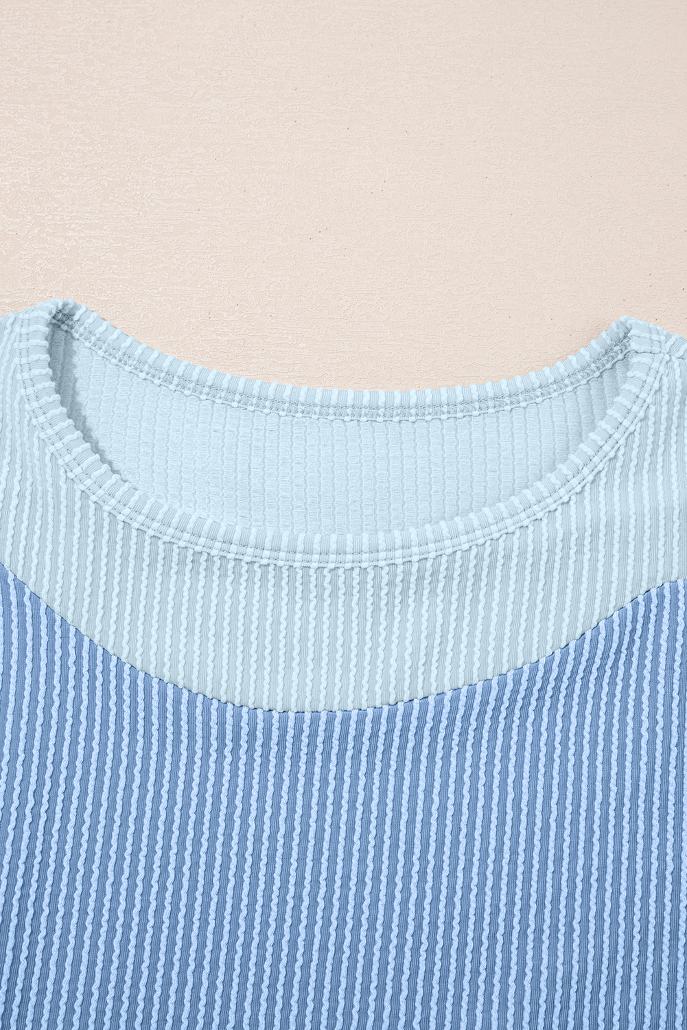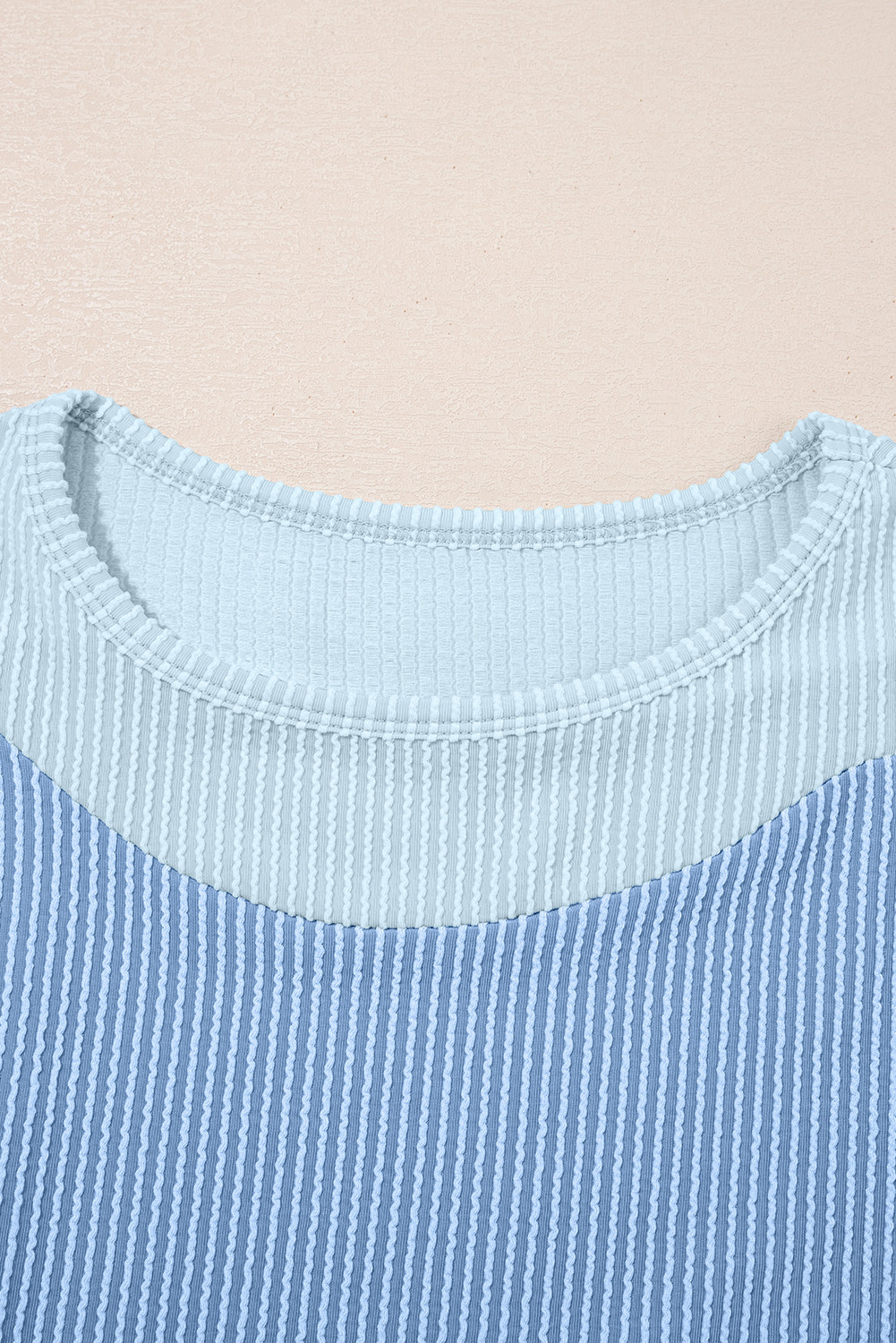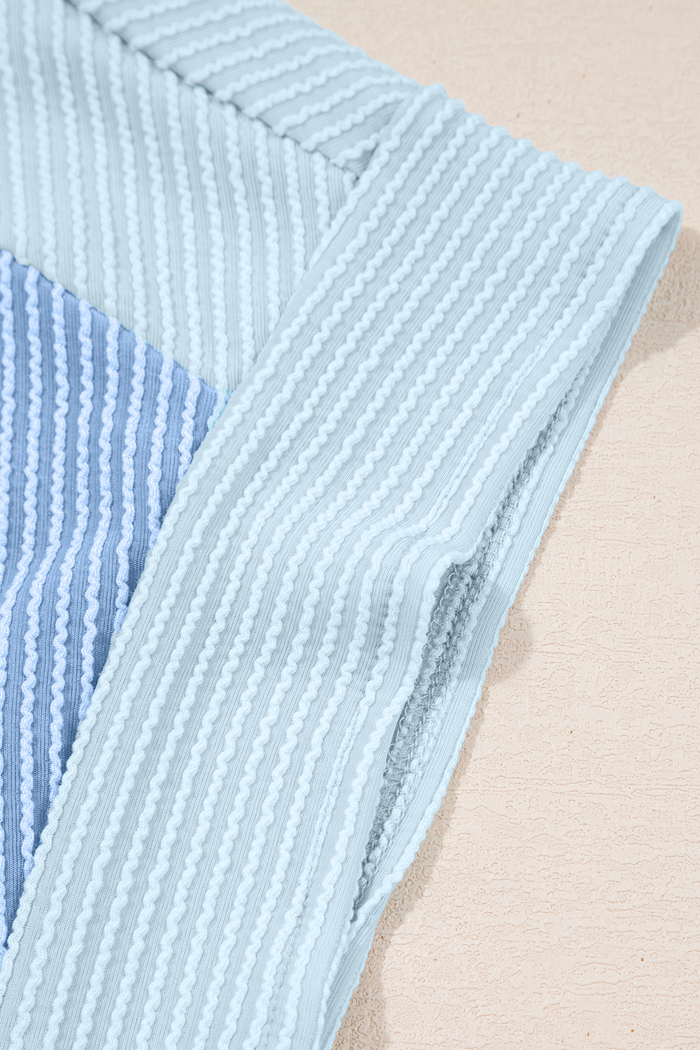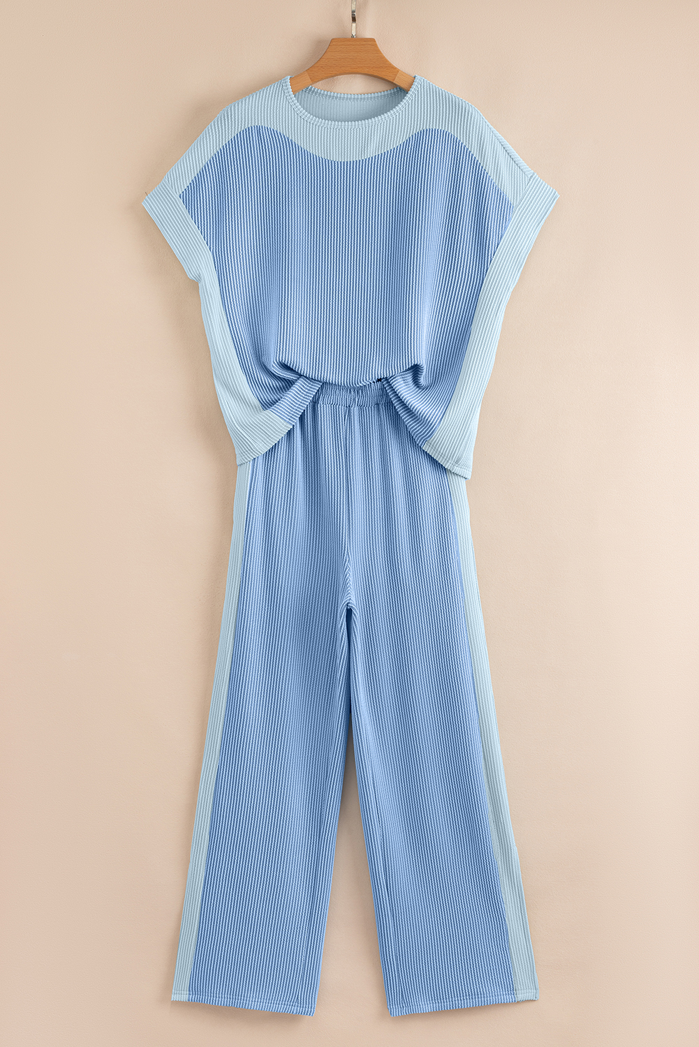 Sky Blue 2-tone Colorblock Patchwork Corded 2pcs Outfit