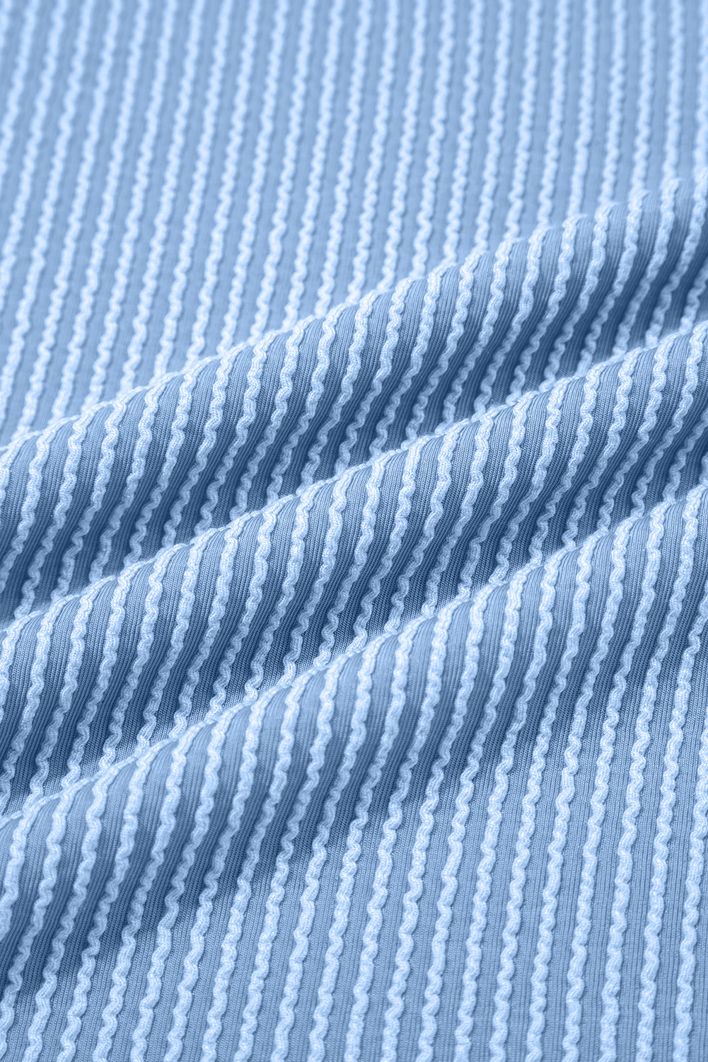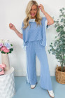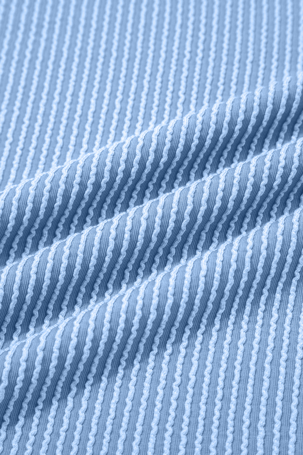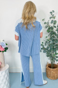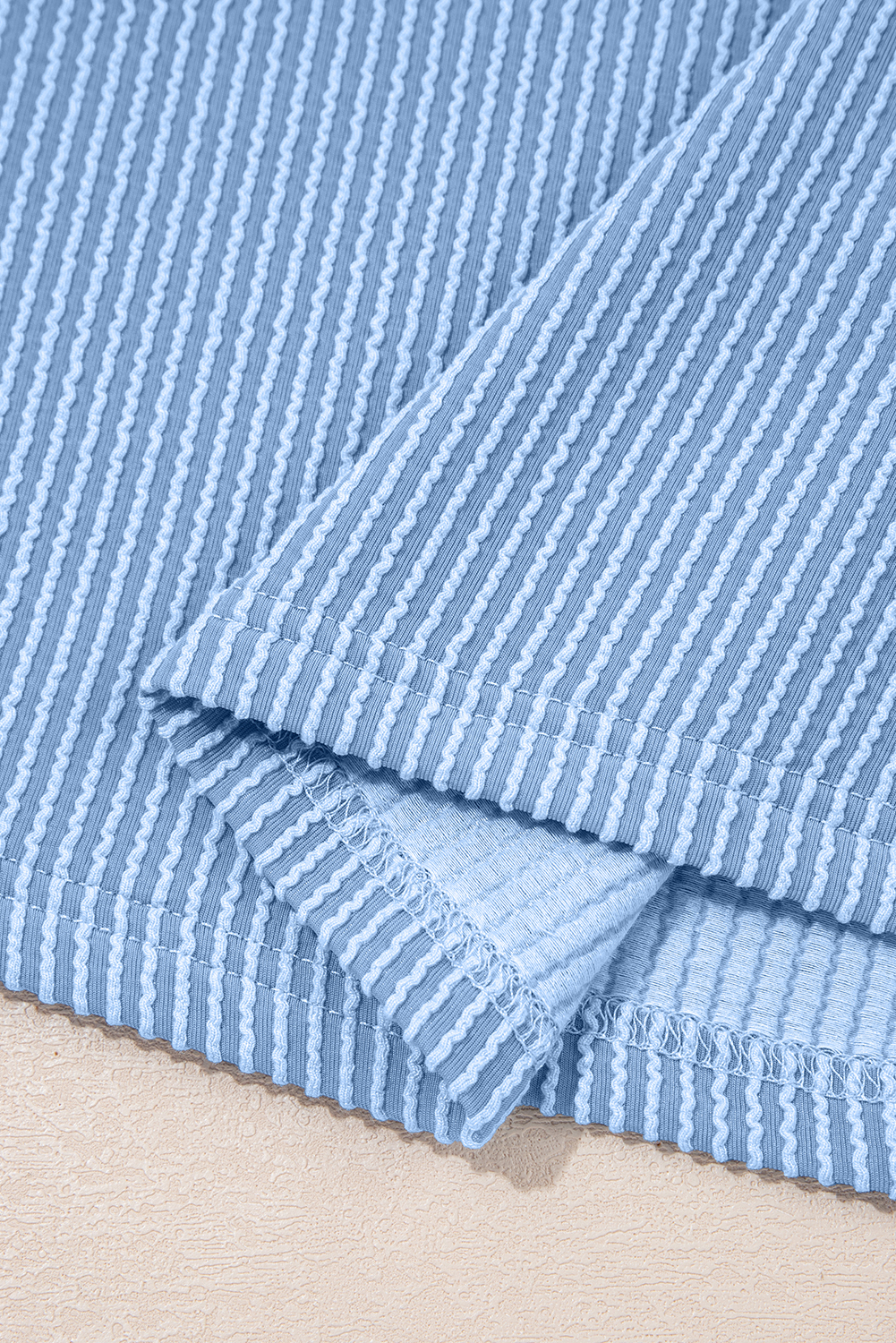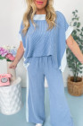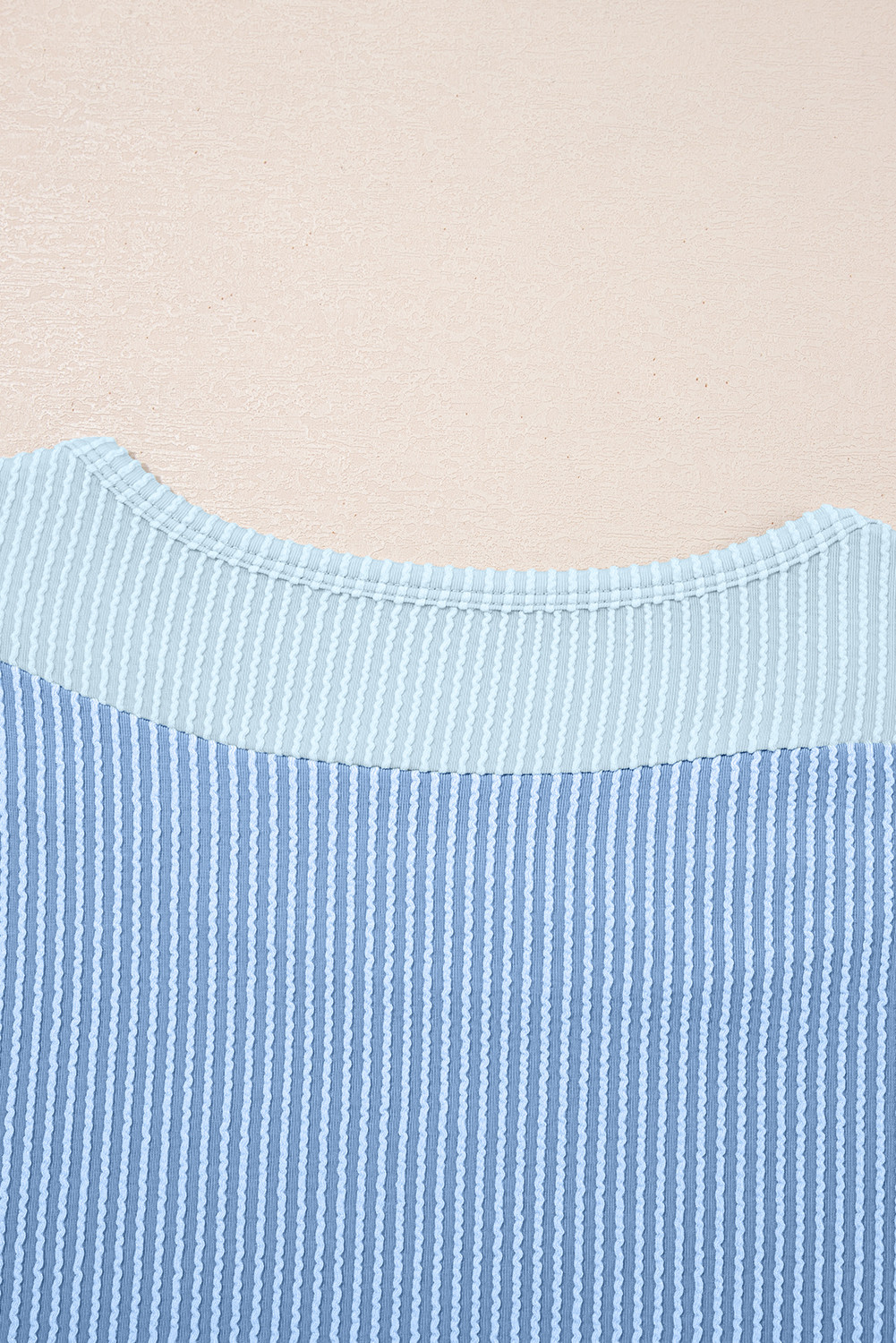 Sky Blue 2-tone Colorblock Patchwork Corded 2pcs Outfit