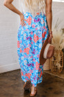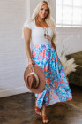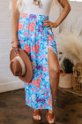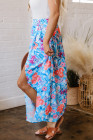 Sky Blue Floral Printed High Waist Split Wrap Long Skirt
