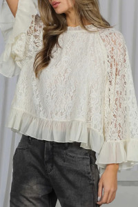 Sky Blue Floral printed lace decorative top