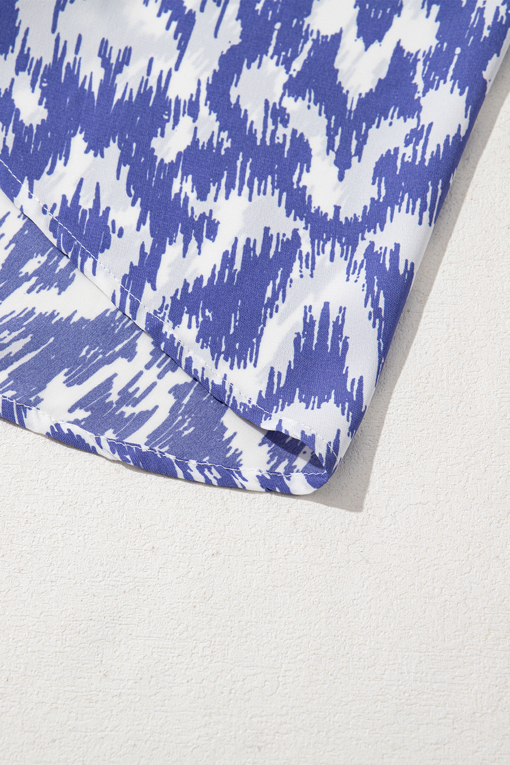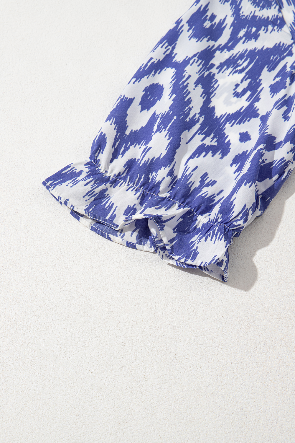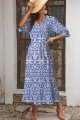 Sky Blue Geometric Print V Neck Casual Long Dress