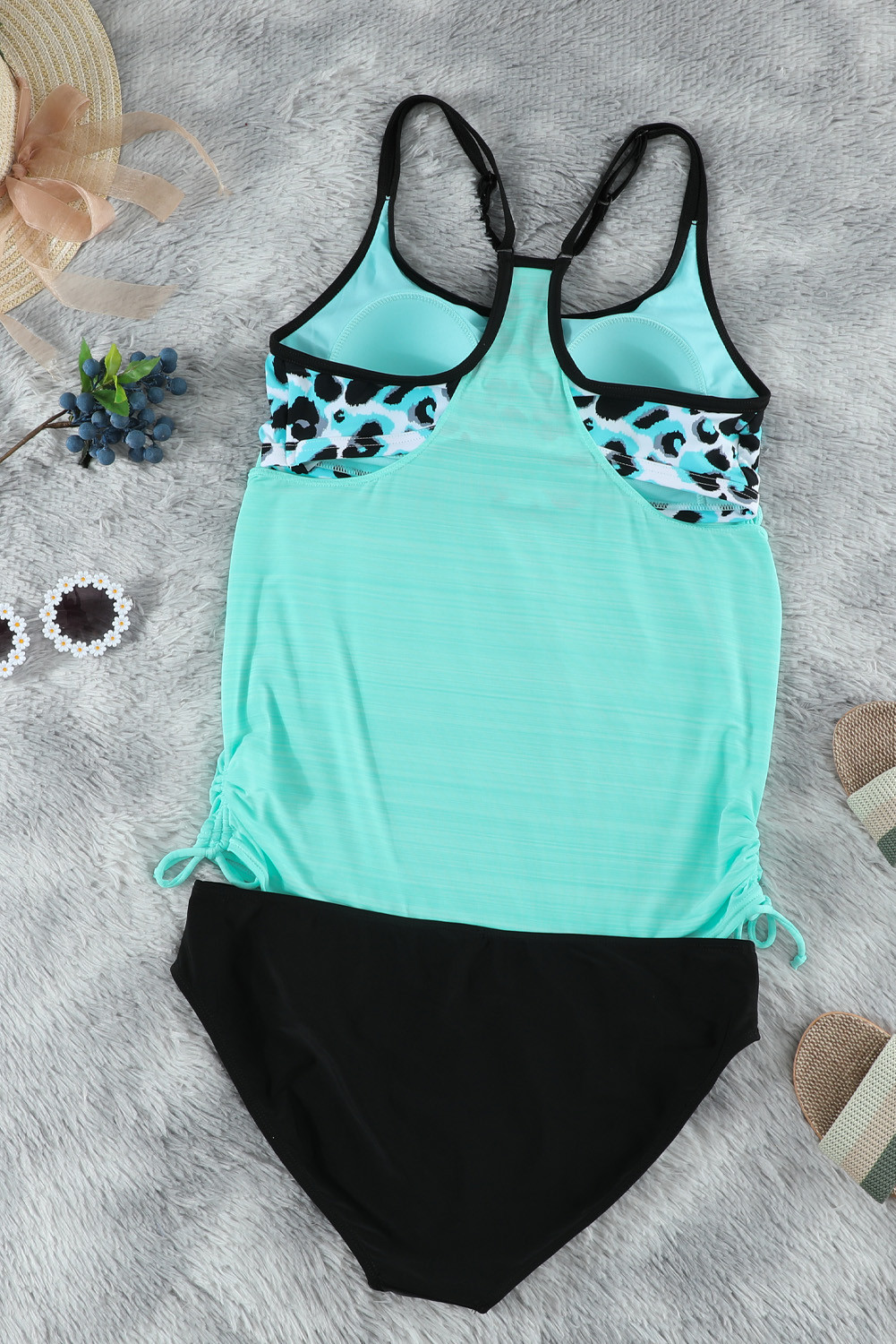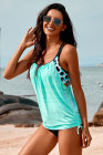 Sky Blue Leopard Printed Lined Tankini Swimsuit